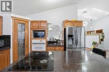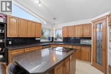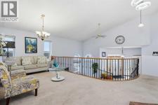 Built to impress, this stunning bi-level home truly has it all — a double attached garage, a walkout basement, and a fantastic location just minutes from the lake. Offering over 2,400 sq ft of living space, this south-facing beauty features 4 bedrooms and 3 full bathrooms, designed to maximize comfort, style, and natural light.Step inside to a grand foyer with a curved feature wall, leading into an open-concept layout with tile flooring, a bright dining area, and a cozy family room complete with a gas fireplace. The oak island kitchen is a chef’s delight, finished with granite countertops, a wine rack, and a spacious walk-in pantry. Vaulted ceilings, large windows, and skylights flood the home with light, creating an airy, inviting atmosphere throughout.Perfect for families, the home offers excellent separation of space with bedrooms thoughtfully spread across three levels — including a private primary suite on its own upper level, separate from the kids' rooms.The fully finished walkout basement is an entertainer’s dream. Featuring 9’ ceilings, two additional bedrooms, a full bathroom, laundry area, and a massive recreation room with an entertainment centre, this space is ideal for gatherings or relaxation. French doors open to a rear wood deck and a fully fenced south-facing backyard.With quick access to major transportation routes and a brand-new high school under construction nearby, this home combines luxury, functionality, and convenience in one exceptional package. (id:6769)
