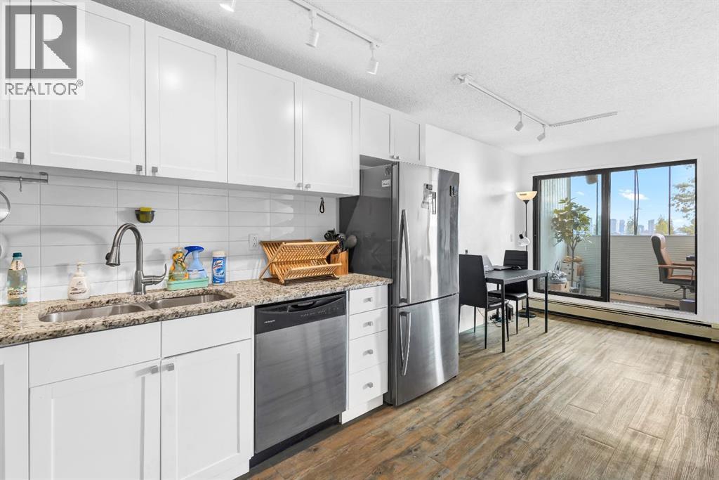 This bright, beautifully renovated condo offers sweeping city views and an unbeatable location just steps from the vibrant amenities of 17th Avenue and only minutes to downtown. Inside, you’ll find an updated kitchen with modern appliances and stylish vinyl plank flooring throughout. The open-concept design is perfect for both entertaining and everyday living, with expansive windows that fill the home with natural light. A flexible sunroom/workshop leads out to an oversized private patio—a rare inner-city find—ideal for relaxing or hosting on warm summer nights. The updated 4-piece bathroom features ample storage, plus the convenience of in-suite laundry. The fully enclosed 70sqft patio NOT included in the square footage measurements offers additional space for an office or flex room with beautiful views of downtown Perfectly suited for young professionals, this home is surrounded by trendy shops and restaurants, within walking distance to downtown, just a 15-minute stroll to the Sunalta CTrain, and close to schools and parks. (id:6769)