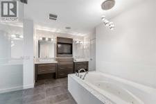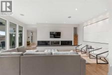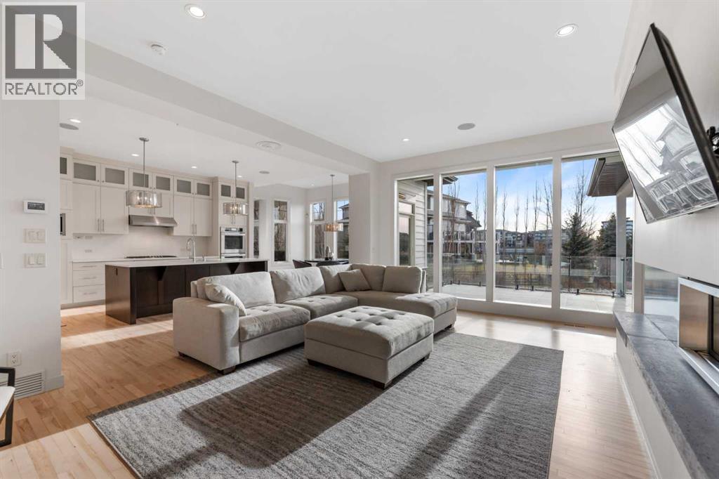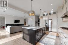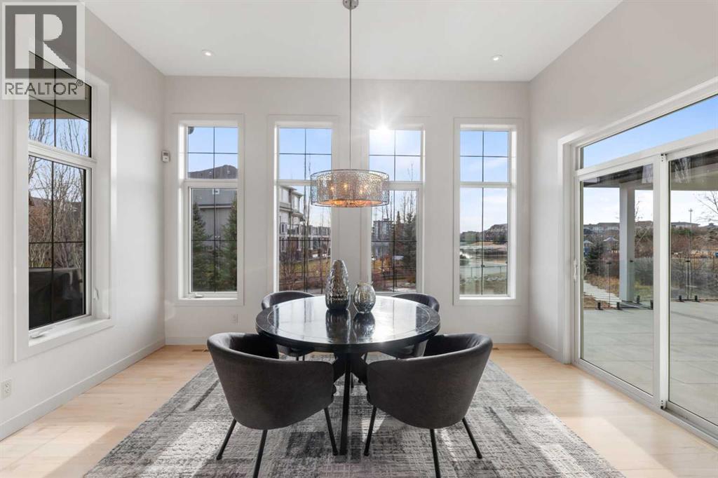This direct lake access property in the award winning community of Mahogany enjoys a sunny south exposure and backs onto West Beach, an outstanding year round recreational anchor for the community. Situated on a quiet cul de sac, this estate quality luxury home was originally built by Baywest Homes in 2011. Since then, it has been extensively renovated and expanded, increasing the total square footage. The result is a truly luxurious and one of a kind residence set on one of the best lots in Mahogany.The home features four well sized bedrooms upstairs plus a bonus room, along with an extremely functional and well planned main floor that offers both a flex room and an office. The sunshine basement awaits your imagination. Ceiling heights are 10 feet on the main level and 11 feet over the dining room, all with flat finish ceilings. Combined with abundant oversized windows, the home feels exceptionally open, bright, and airy.The kitchen, anchoring the main floor, overlooks the glistening lake through massive windows. Beautiful hardwood floors, stunning white full height cabinetry with glass accents, a large island finished in a contrasting darker tone, and quartz countertops create a timeless and elegant space. The dining area and outdoor balcony provide seamless indoor and outdoor dining options and easily accommodate large gatherings.The living room, complete with a gas fireplace, benefits from extra windows, while the sizeable mudroom off the double front drive garage offers ample storage and can be closed off from guests for privacy.A carpeted staircase leads to the upper level, where the same carpeting continues through the hallways and bonus room. The four upper bedrooms include a spacious primary suite with lake views, large enough to accommodate any furnishings you choose. The spa like five piece ensuite features a soaker tub, double sinks on a raised vanity, and a walk in closet generous enough for two. The three additional bedrooms are all well sized and share a four piece family bath. The upper level laundry room is exceptional in both size and functionality.The south facing windows overlook the professionally landscaped yard, complete with a beautiful water fall feature. This is one of the largest and most desirable pie shaped lots in Mahogany, offering easy access to West Beach, as well as access to a shared dock. From your backyard, you are only steps from the beach and the water.Recent upgrades include porcelain tile over the vinyl deck, a high end glass railing, a covered deck with a fireplace and outdoor TV, an underground sprinkler system, two AC units, and two furnaces. (id:6769)