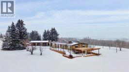 Breathtaking panoramic views of rolling countryside, sunrises, sunsets, the Rockies, and Calgary’s skyline define this exceptional gated & fenced almost 40 acre property just 5 mins to Calgary city limits south. Original family owned and built, 1st time ever listed. Formerly a licensed commercial greenhouse operation, the beautifully landscaped property features mature trees, concrete walkways, and endless potential. The large cedar log bungalow offers warmth and character with 2 wood burning fireplaces, expansive living spaces, flexible bedrooms/offices, developed basement areas, and seamless indoor-outdoor living with decks, pergolas, and patios. Equipped with hydronic and forced-air heating, A/C, Vacu-Flo, security system, radon mitigation, dual wells, softened and distilled water, and a meticulously maintained septic system. Extensive infrastructure includes a triple garage, heated workshop, barn with loft, and three fully serviced greenhouses, with parking. Easy highway access to Calgary and Okotoks, school bus route, agricultural income potential, and future subdivision or home-based business opportunities (with county approval). A rare, versatile acreage so close to Calgary offering lifestyle, income, and long-term value. (id:6769)