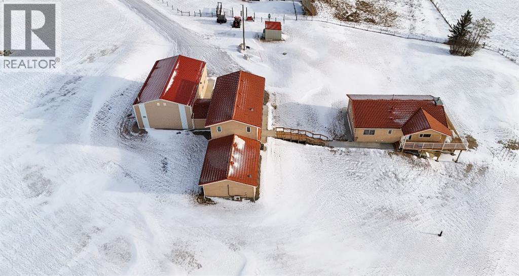 Exceptional 24.02-acre property with breathtaking 360° views of the countryside, sunrises, sunsets, and the Rocky Mountains. Fully fenced and gated, this former licensedcommercial operation features extensive concrete walkways, patios, and aprons. A year-round headwater spring feeds three connected ponds with agricultural water rights. Thehome offers a wrap-around deck, walkout lower level, hardwood floors, 3 bedrooms,multiple baths, a Vermont Castings wood-burning heater, spacious rec room, ample storage and radon mitigation. A well-designed fully PERMITTED COMMERCIAL COMPLEX (cost to build today $800k) includes a 2-storey COMMERCIAL CODE office/studio building, PLUS single-storey attachedwarehouse/storage area. These are connected via a reception/foyer to a HUGE MULTI PURPOSE WORKSHOP with 12’x12’ overhead door. All are extensively serviced with hydronic heating, heated concrete floors, A/C (select buildings), Vacu-Flo, security and intercom systems, hail-resistant roofing, and robust utilities. There is a well supplied 3,000 gallon cistern, multiple hydrants, a stock waterer and annually maintained septic system. Buildings have softened water throughout, with distilled drinking water in the house kitchen. The property boasts a grid-tied SOLAR system ($75k to build) with surplus power credits ($3,200 in 2025), and 22 kVA automatic standby diesel generator. Ideally located with quick access to Calgary, Okotoks and High River, also on a school busroute, with hayed fields and excellent potential for subdivision, secondary suite, or home-based business (County approval required). (id:6769)