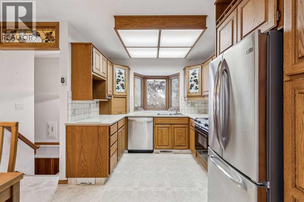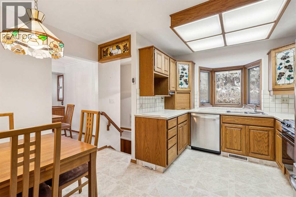 The current owner has enjoyed living here since about 1964! She has absolutely loved the neighborhood and the layout of this amazing bungalow! It is the perfect family home located just a 5 minute walk to two schools - Acadia school (Public K to 6) and David Thompson school (Public 5 to 9 English plus French Immersion). Also, there is excellent access to the Acadia Rec complex, shopping, restaurants, etc! There are three good sized bedrooms on the main floor and one more downstairs. The Living room, Dining area and Kitchen are all a good size and the basement has a Large Family Room highlighted by and abundance of storage cabinets and a brick fireplace. Please note the gas insert in the fireplace hasn't been used for years and it is not working. But the insert can be removed and the fireplace can be converted back to wood by the new owner with an inspection. The basement also has a Recreation/Games room that features a pool table which stays, along with a bedroom and a 3 pce bathroom. The Kitchen appliances are stainless steel, there's a great Maytag washer and dryer setup with shelves downstairs along with an abundance of storage space, the furnace was replaced in 2015, shingles on both the house and the garage were replaced in September of 2024, there are Corian kitchen countertops and a number of the main floor windows have been replaced over the years. There's a big back yard with patio and an oversized single detached garage. This is absolutely a home that you can enjoy for years with an amazing location! (id:6769)
