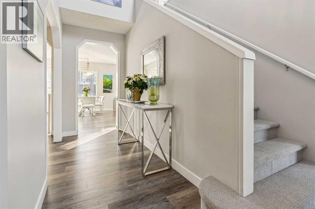Warm, welcoming and thoughtfully updated, this move-in ready family home offers a spacious floor plan designed for everyday living and family connection and has been lovingly maintained as a no smoking, no pet home. An inviting foyer with elegant lighting sets a polished first impression and opens to a front-facing living room filled with natural light, creating a comfortable space for gathering or quiet moments. A dedicated dining room provides an ideal setting for hosting, where refined lighting enhances meals, celebrations and conversations. Neutral luxury vinyl plank flooring flows throughout the main level, delivering durability, easy maintenance, and a cohesive modern look. A white kitchen anchors the heart of the home with timeless subway tile, full-height cabinetry, all new stainless steel appliances, and generous workspace designed for both daily routines and entertaining. An adjacent breakfast nook connects seamlessly to the rear yard, encouraging effortless indoor-outdoor living. Relaxation is invited in front of the gas fireplace in the comfortable family room with clear sightlines for unobstructed connectivity. A powder room and practical mud room complete the main level, supporting busy family life with ease. Upstairs, brand new carpet enhances comfort throughout the upper level, where a calming primary retreat features a walk-in closet and a recently updated ensuite with dual sinks, a deep soaker tub, a separate shower and a sunny skylight that enhances the sense of space and comfort. 3 additional upper bedrooms are well proportioned and filled with natural light, offering flexibility for children, guests or home office needs. A recently updated 4-piece bathroom serves the upper level, while convenient upstairs laundry eliminates carrying loads between floors. An unfinished basement provides excellent future potential for customization while offering ample storage today. Major upgrades completed in recent years include the roof, furnace, water softene r and fence, adding long-term peace of mind. Outside, a huge south-facing backyard creates outstanding outdoor living potential with space for kids, pets, gardens and seasonal activities, complemented by an expansive composite deck ideal for barbequing and unwinding. An insulated and drywalled double attached garage adds everyday convenience and year-round functionality. Signal Hill delivers exceptional lifestyle value with nearby grocery stores, big box retailers, restaurants, Optimist Athletic Park and Westside Recreation Centre all close at hand. Quick access to Stoney Trail, Sarcee Trail and Glenmore Trail ensures smooth commuting and easy escapes from the city, making this home a balanced blend of comfort, space and location! (id:6769)