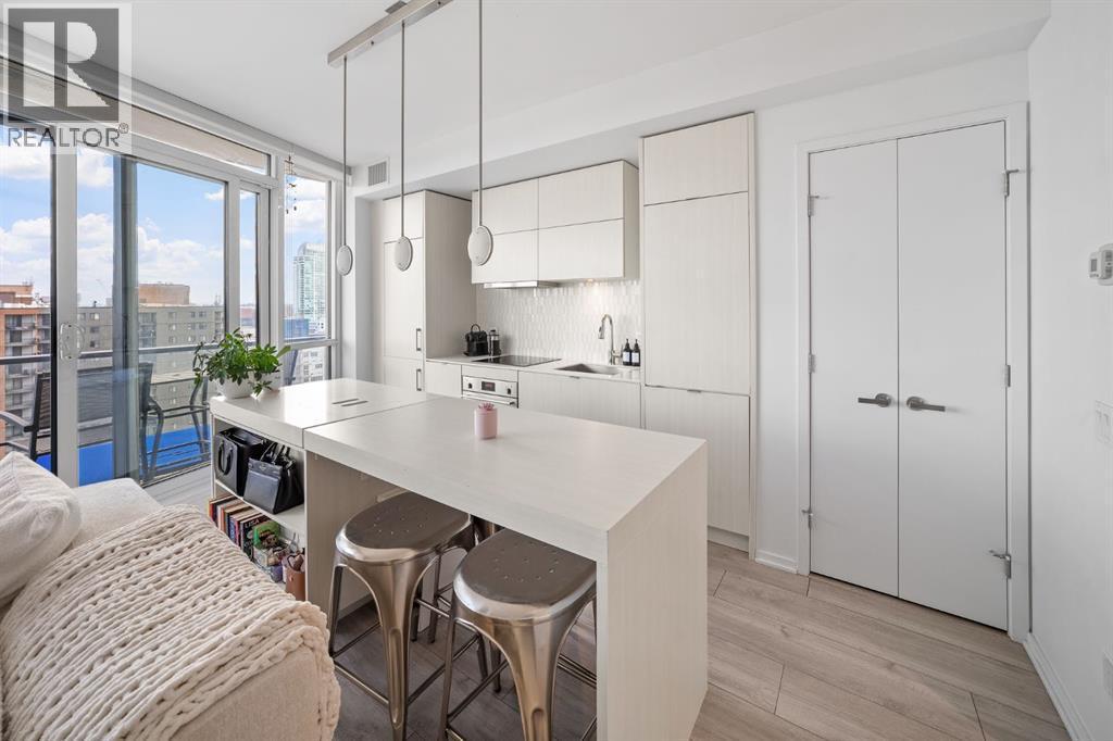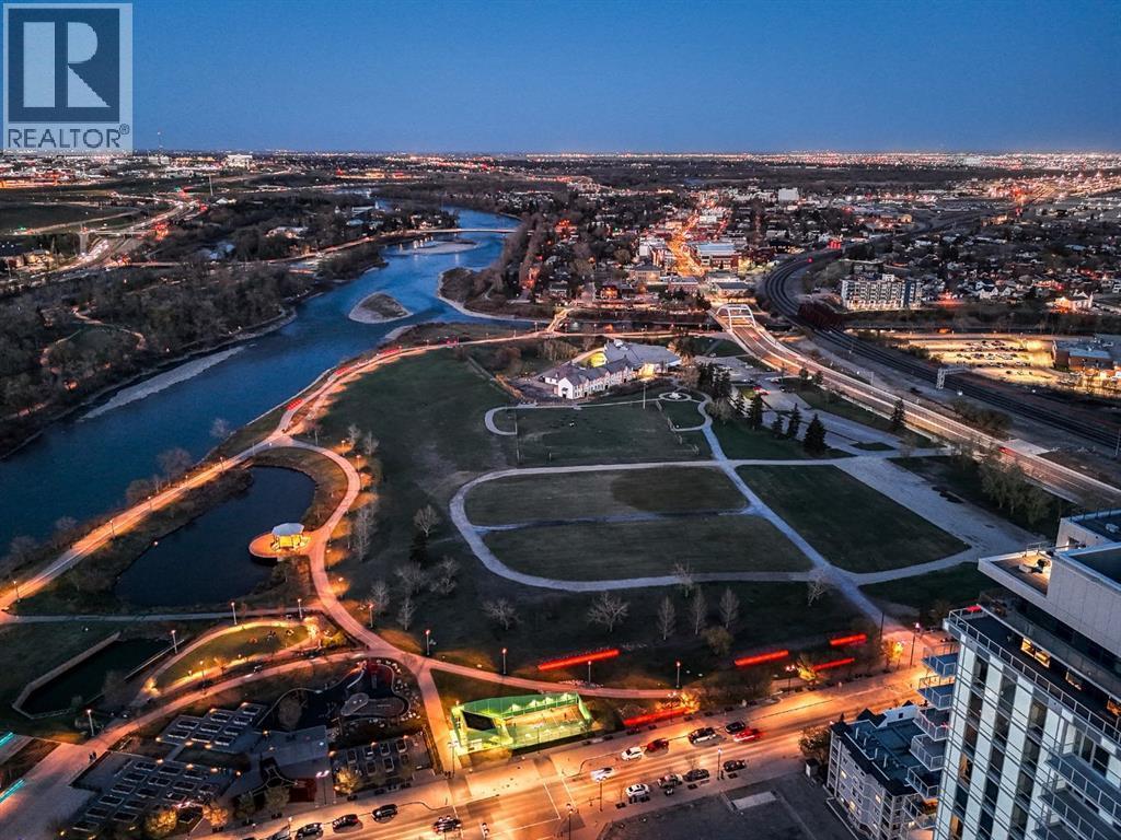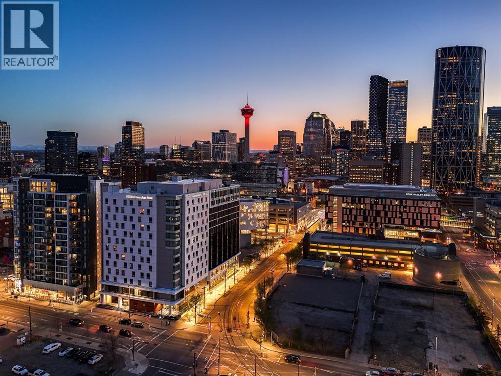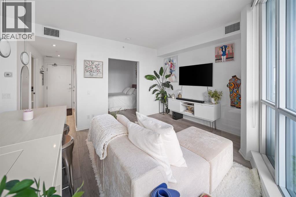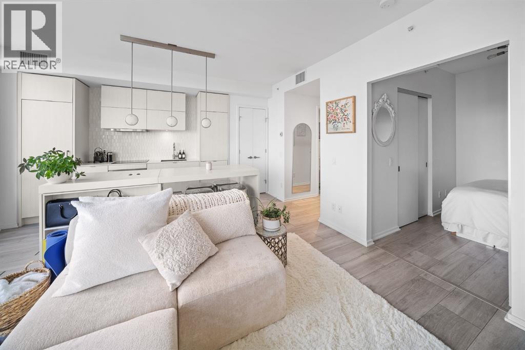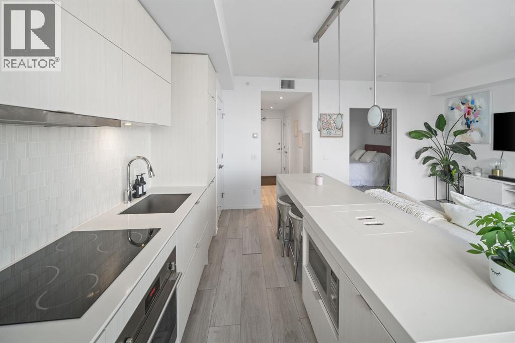 Welcome to The Verve, one of East Village’s most sought-after addresses. This stylish 1-bedroom, 1-bathroom condo blends contemporary design with an unbeatable inner-city lifestyle — just steps from the Bow River, river pathways, parks, and Calgary’s best urban amenities, most within a 5–15 minute walk.Inside, you’ll find a thoughtfully designed open-concept layout ideal for both everyday living and entertaining. The sleek kitchen features white quartz countertops, integrated appliances, and a spacious island, while floor-to-ceiling windows flood the space with natural light and frame beautiful river and city views. Wide-plank flooring, designer lighting, and a generous private balcony complete the modern feel.This unit includes a leased underground parking stall paid through early 2026 (approximately $130/month). The building also offers heated underground visitor parking, an enclosed loading dock for moves, and an assigned storage locker.Residents enjoy a full-service lifestyle with secure access to the lobby, parkade, and elevators, plus concierge service from 8am–8pm and overnight security. Amenities include a fully equipped fitness centre, an elegant lounge with kitchen and fireplace, a landscaped courtyard with firepit and BBQ area, and an incredible 25th-floor rooftop terrace with sweeping city views. A fully furnished guest suite is available for visiting friends and family, along with secure bicycle storage and a bike service bay.From your front door, you’re steps to the LRT, Central Library, Studio Bell, Stampede Park, Bow River Pathway, and a vibrant mix of cafés, dining, and entertainment.This is your opportunity to own a turn-key condo with a view — and a lifestyle to match.Book your private viewing today. (id:6769)