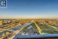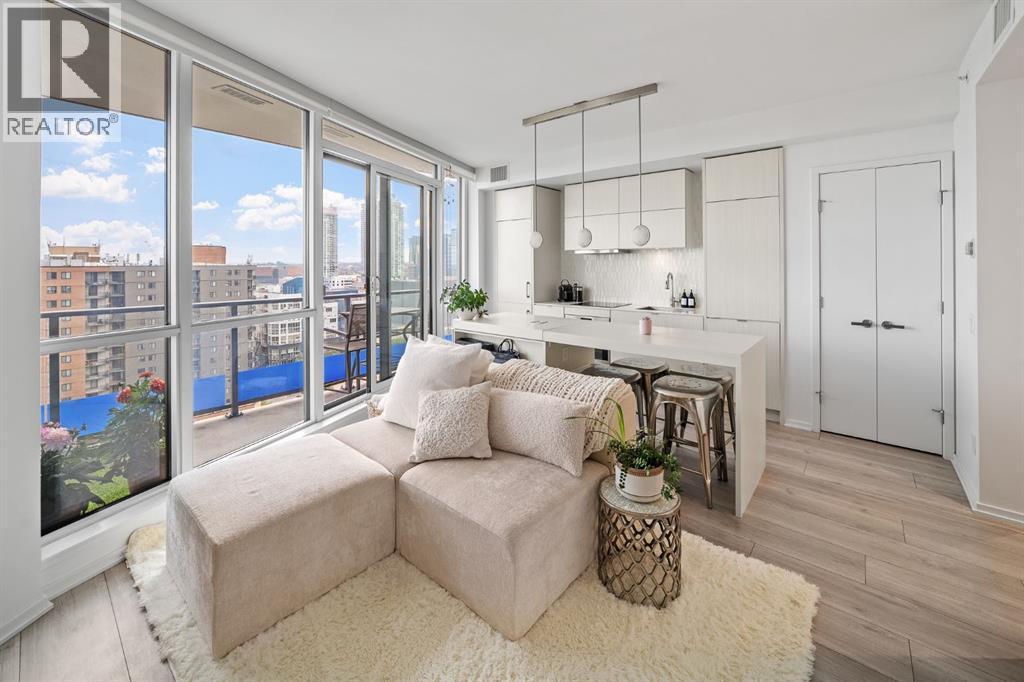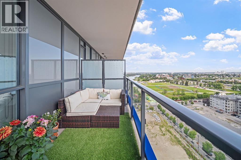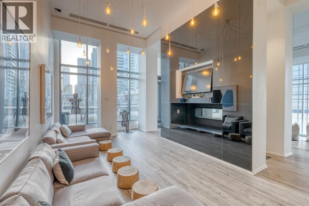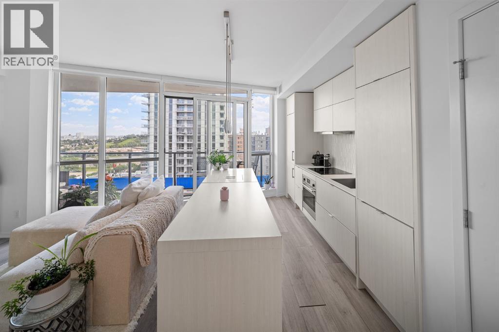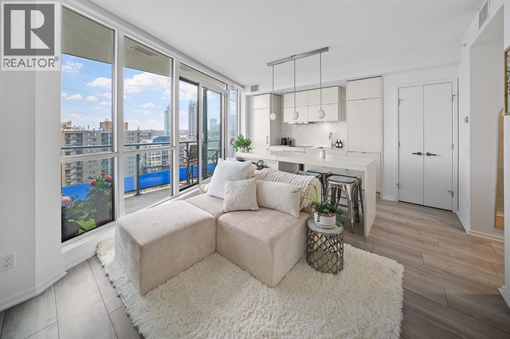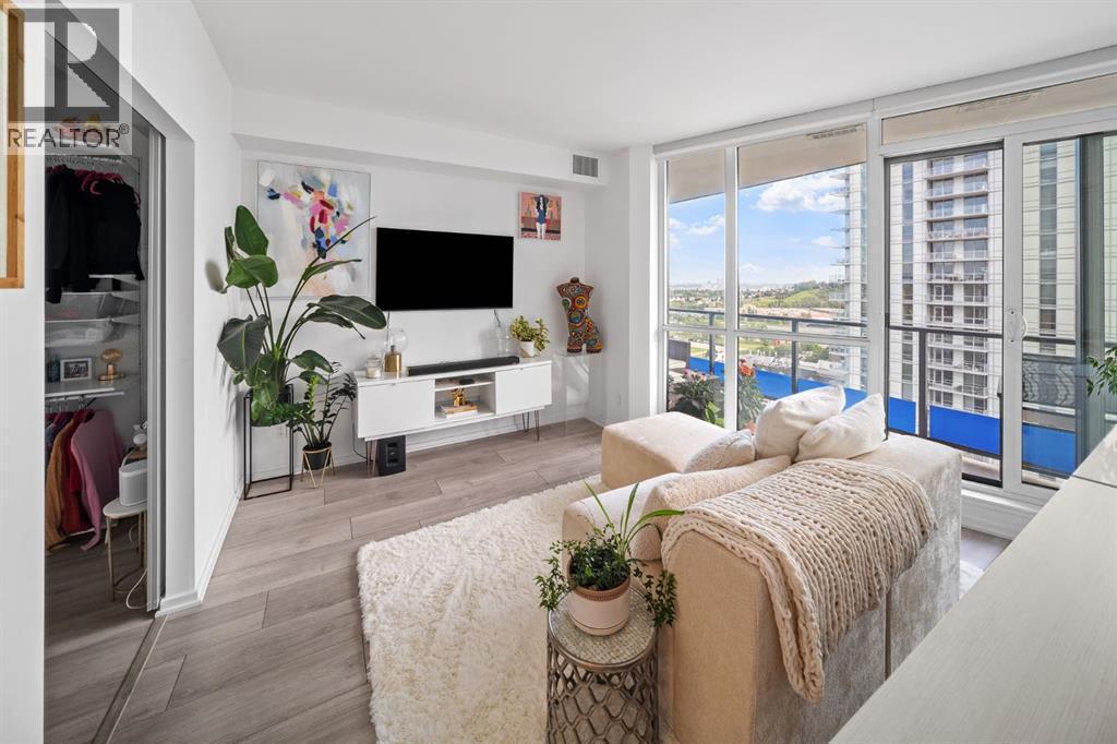 Welcome to The Verve, one of East Village’s most sought-after addresses. This stylish 1-bedroom, 1-bathroom condo blends contemporary design with an unbeatable inner-city lifestyle — just steps from the Bow River, river pathways, parks, and Calgary’s best urban amenities, most within a 5–15 minute walk.Inside, you’ll find a thoughtfully designed open-concept layout ideal for both everyday living and entertaining. The sleek kitchen features white quartz countertops, integrated appliances, and a spacious island, while floor-to-ceiling windows flood the space with natural light and frame beautiful river and city views. Wide-plank flooring, designer lighting, and a generous private balcony complete the modern feel.This unit includes a leased underground parking stall paid through early 2026 (approximately $130/month). The building also offers heated underground visitor parking, an enclosed loading dock for moves, and an assigned storage locker.Residents enjoy a full-service lifestyle with secure access to the lobby, parkade, and elevators, plus concierge service from 8am–8pm and overnight security. Amenities include a fully equipped fitness centre, an elegant lounge with kitchen and fireplace, a landscaped courtyard with firepit and BBQ area, and an incredible 25th-floor rooftop terrace with sweeping city views. A fully furnished guest suite is available for visiting friends and family, along with secure bicycle storage and a bike service bay.From your front door, you’re steps to the LRT, Central Library, Studio Bell, Stampede Park, Bow River Pathway, and a vibrant mix of cafés, dining, and entertainment.This is your opportunity to own a turn-key condo with a view — and a lifestyle to match.Book your private viewing today. (id:6769)