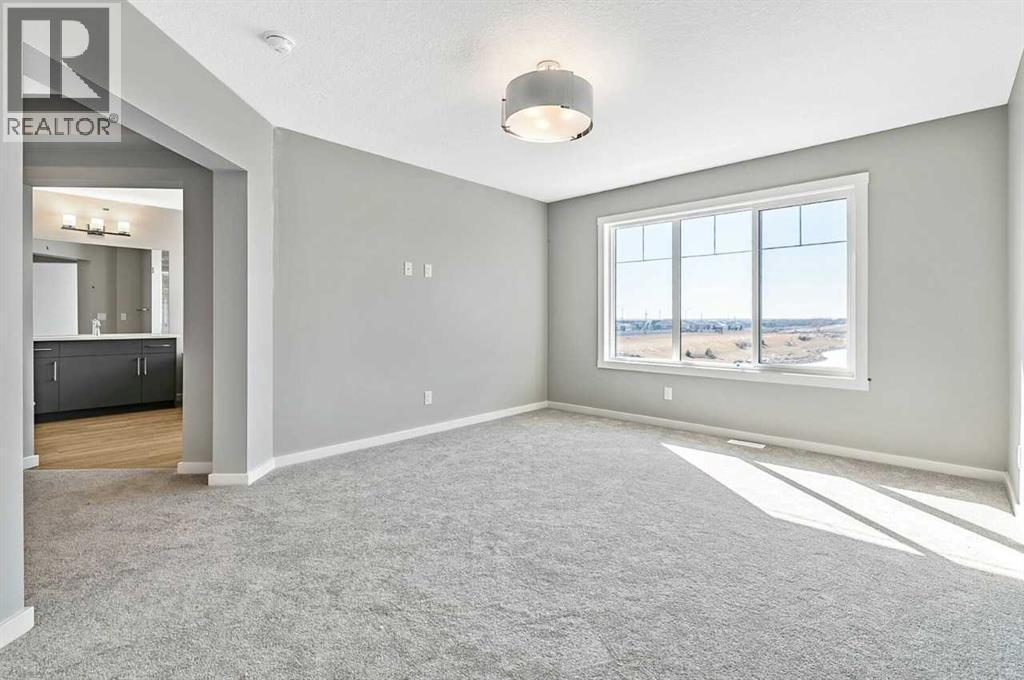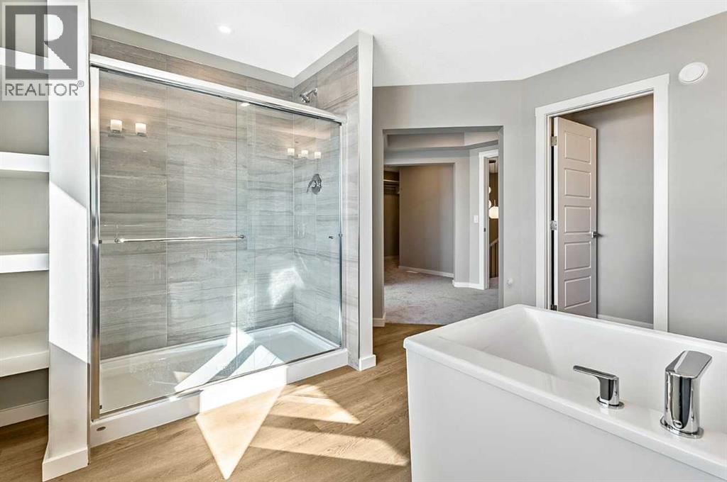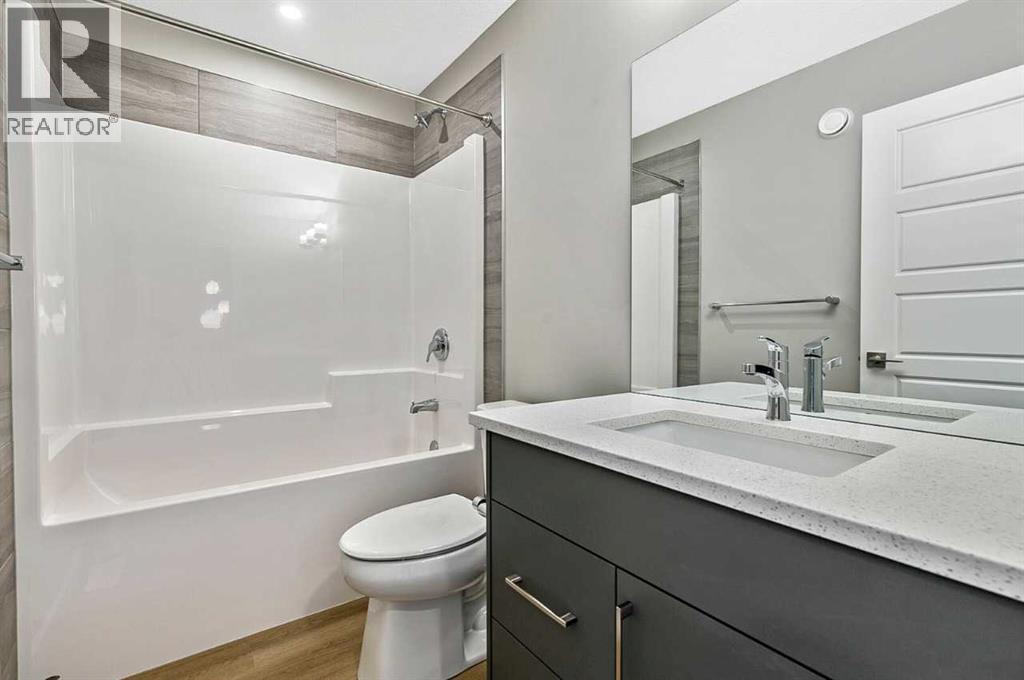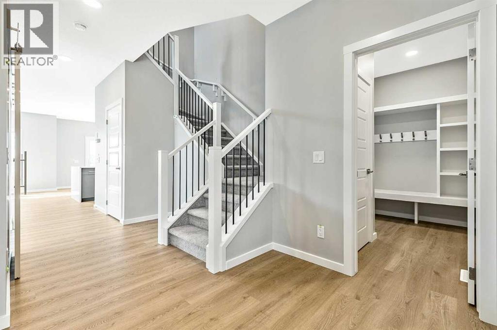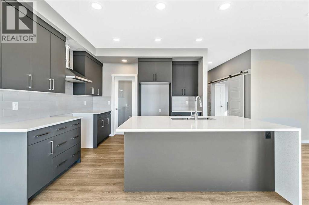 This home is located in the peaceful community of Key Ranch, Airdrie, Alberta. This beautiful two storey home sits on a spacious traditional lot and has no rear neighbors. It includes a walkout basement to the south facing backyard and includes a rear deck off the main floor, and patio off the walkout basement. This home has a spacious main floor flex room for an office or guests. The main floor boasts 9ft knockdown ceilings for a bright and open feel. Including high-end kitchen finishes such as; chimney hood fan, soft-close cabinets to the ceiling, quartz countertops, and an undermount sink. Primary bedroom retreat featuring a 5-piece ensuite with dual vanity sinks, free-standing soaker tub, walk-in shower with tiled walls, and a private water closet. Custom melamine shelving in the pantry and primary walk-in closet for optimal storage. Triple-pane windows, high-efficiency furnace, hot water tank, and HRV system for superior energy efficiency. (id:6769)