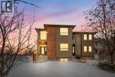 Welcome to refined inner-city living in the heart of Parkdale, just minutes from the Bow River pathways and surrounded by the best of Calgary’s urban lifestyle. This striking contemporary infill blends timeless design with everyday comfort — perfect for professionals, families, and anyone who loves being close to it all.Offering just under 3,000 sq.ft. of beautifully finished living space, this home features 4 bedrooms, 3.5 bathrooms, and a versatile bonus loft designed for real life and effortless entertaining. From the moment you enter, the space feels light, open, and intentional, with 9’ flat ceilings, pot lighting, solid core doors, and custom built-ins throughout. A dramatic open-to-above entry sets the tone, while a front office or flex space and rich maple hardwood floors anchor the main level.At the heart of the home, the chef’s kitchen commands attention with granite countertops, an oversized island, under-cabinet lighting, and stunning custom cabinetry. A premium stainless steel appliance package includes a commercial-style gas range and French door fridge — perfect for both everyday meals and hosting. The formal dining area features a custom built-in buffet, flowing seamlessly into the open-concept great room where a sleek modern fireplace creates a warm and inviting focal point.Upstairs, an extra-wide staircase leads to a bright loft area and an impressive primary retreat complete with two walk-in closets and downtown skyline views. The spa-inspired ensuite offers dual vanities, a large glass shower, and a statement soaker tub — your own private escape at the end of the day. A second upper bedroom is filled with natural light and opens to its own private balcony.The fully finished lower level adds even more flexibility, featuring a spacious third bedroom with walk-in closet and a full bathroom finished with marble countertops — ideal for guests, teens, or a private workspace.Outside, enjoy low-maintenance landscaping, a 6-foot cedar fence, and a pr ivate deck designed for summer evenings and relaxed outdoor living.This is inner-city living done right — steps from parks, river pathways, and everything that makes Parkdale one of Calgary’s most sought-after communities. (id:6769)
