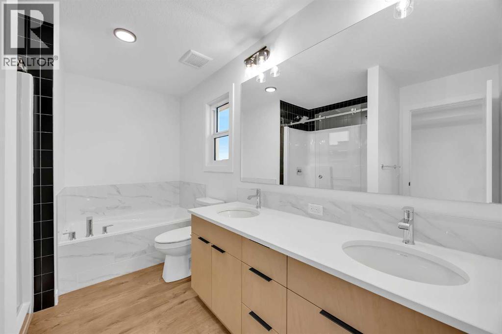 Welcome to The Abbott, where timeless design meets everyday functionality in the heart of the vibrant Airdrie community. Built by a trusted builder with over 70 years of experience, this thoughtfully designed home showcases designer curated interior selections, creating a warm and personalized living space. Energy efficient construction, smart home features, and moving concierge services add exceptional value and convenience.The chef inspired kitchen features stainless steel appliances, a gas range, chimney style hood fan, and a walk in pantry. A main floor bedroom and full bathroom provide flexibility for guests or multi generational living, while the separate side entrance enhances functionality. Unwind on your private rear wood deck, gather by the electric fireplace, or enjoy the spacious vaulted bonus room with LVP flooring perfect for relaxing or entertaining.The primary retreat offers a luxurious 5-piece ensuite with dual sinks, a bank of drawers, a soaker tub, and a separate glass shower. Elevated finishes such as paint grade railings with iron spindles and a tray ceiling in the primary bedroom reflect the quality craftsmanship throughout.Located in one of Alberta’s most desirable and fast growing communities, Airdrie is known for its strong sense of community, family friendly neighbourhoods, and abundance of parks, pathways, and recreational amenities. Residents enjoy excellent schools, local shops, cafes, and year round community events. With quick access to Calgary International Airport, CrossIron Mills Shopping Centre, and major commuter routes, Airdrie offers the perfect balance of small-town charm and big city convenience.This is more than a home it’s a lifestyle. (id:6769)