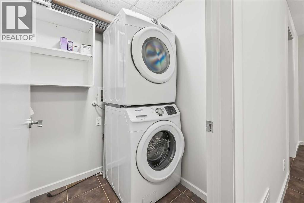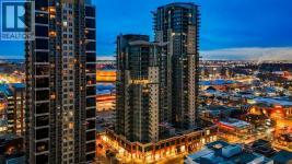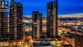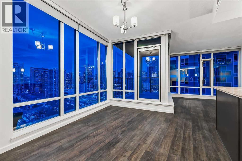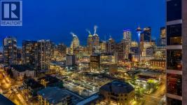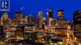 Exceptional 16th-Floor Unit with Breathtaking Panoramic Views! This beautifully appointed unit on the 16th floor offers stunning, uninterrupted views of both the mountains and downtown skyline. Ideally situated within close proximity to the LRT and the MNP Community & Sport Centre, this residence combines convenience with luxury. The upgraded interior features high-quality finishes, including maple cabinetry, granite countertops, stainless steel appliances, luxury vinyl flooring, tile, and floor-to-ceiling windows that maximize natural light and panoramic vistas. The entryway includes a walk-in coat closet with custom built-in storage for added organization. A dedicated home office area is integrated into the layout, complete with a granite work surface. The in-suite laundry room offers additional storage space for everyday practicality. The generously sized second bedroom enjoys remarkable views and includes a walk-in closet with a convenient cheater door leading to a well-appointed bathroom featuring a large walk-in shower. The kitchen, with its modern design, opens seamlessly to the dining and living areas, creating an ideal space for entertaining. The private balcony extends the living space outdoors, offering an excellent setting for barbecuing or simply taking in the spectacular scenery. The comfortable living room provides an inviting atmosphere for relaxation and social gatherings. The primary bedroom is a peaceful retreat, showcasing expansive views and a walk-through closet that leads to a luxurious four-piece ensuite bathroom. Residents also enjoy access to a well-equipped amenity center, which includes an exercise room, hot tub, sauna-equipped dressing rooms, a gathering space with pool table, theater room and patio access, one being the rooftop! Additional features include assigned storage and one titled parking stall. Located just a couple of blocks from the Stampede Grounds and the C-train station, this prime location offers easy access to downtown am enities, dining, entertainment, and much more. This building is 18+ and no dogs are allowed. Book your showing and come on Buy! (id:6769)