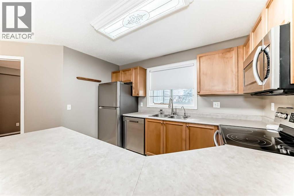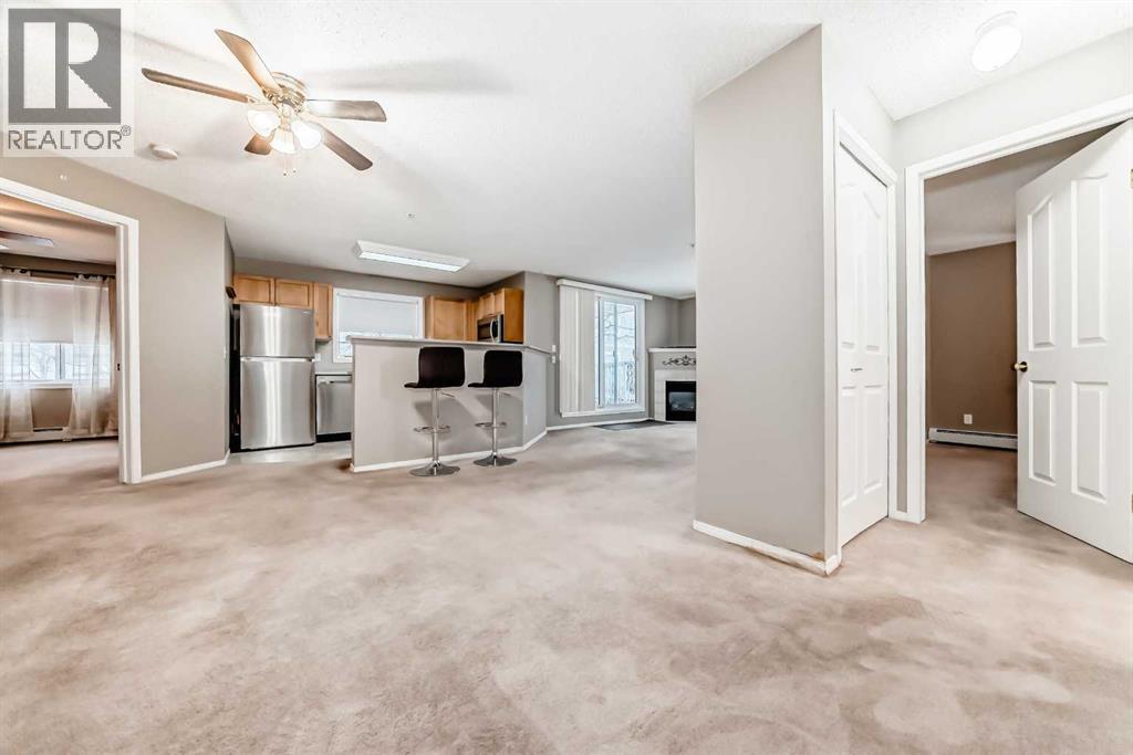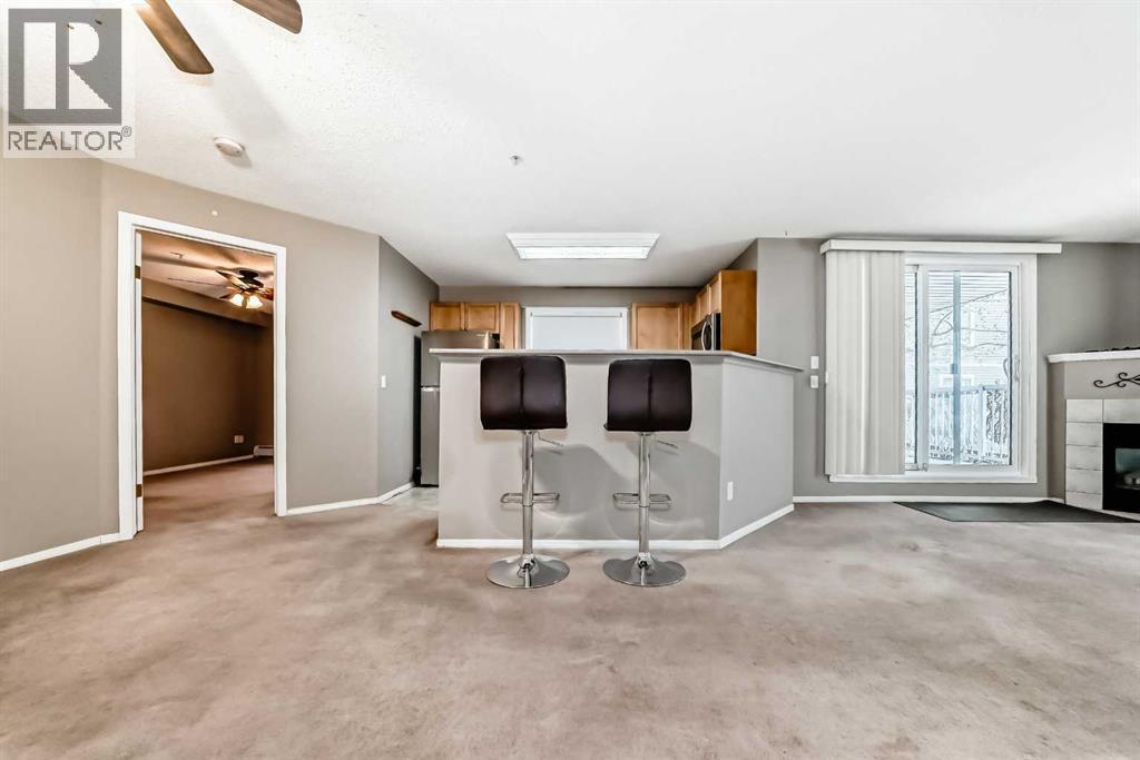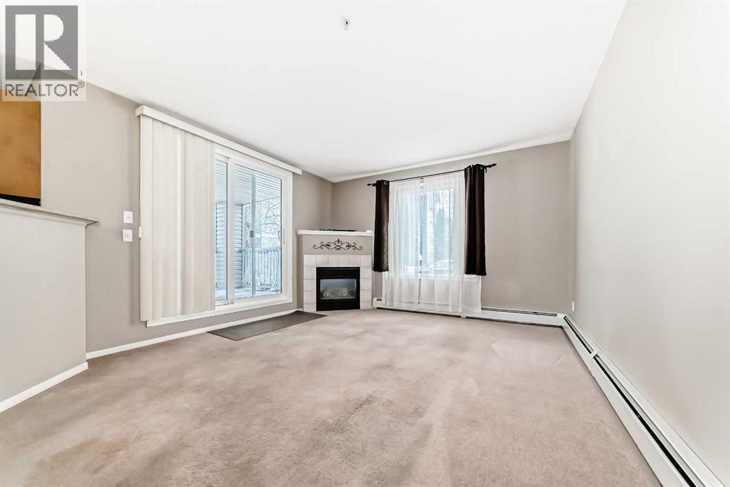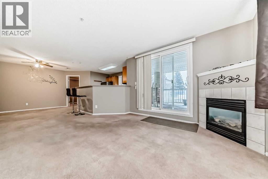 Welcome to this bright and inviting main-floor condo in Airdrie, well-suited for first-time buyers, downsizers, or anyone seeking low-maintenance living.This thoughtfully designed 2-bedroom, 2-bathroom end unit layout offers ideal separation between the bedrooms, including a primary suite with a walk-through closet and private 4-piece en suite.The open-concept main living area features a practical kitchen breakfast bar, a cozy gas fireplace, plus direct access to your south-facing, fenced patio—perfect for morning coffee or simply enjoying extra privacy. The carpet has just been replaced too, offering a fresh start!You’ll appreciate the convenience of a titled underground parking stall with secure storage, plus on-site visitor parking for guests. (This unit currently enjoys a long-term lease surface parking spot, as well.) Among other benefits, the condo fees include heat, electricity, and water, making budgeting a breeze.A comfortable, functional, and well-located home in a low-rise building close to Airdrie amenities—this one is ready when you are! (id:6769)