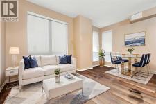 Perched on the 11th floor with sweeping, unobstructed views of the River Valley and Rocky Mountains, this bright corner unit combines comfort, functionality, and an unbeatable location. Featuring an open-concept layout, the home offers laminate flooring in the living and dining areas, creating a fresh and modern feel throughout the main living space. The kitchen is well-appointed with generous cabinetry, ample counter space, and a sunny window that floods the space with natural light. Two spacious bedrooms provide flexible living options, while a 4-piece bathroom with soaker tub, insuite laundry, and a titled indoor parking stall add everyday convenience. Residents of The Vantage enjoy access to a fitness centre, bike storage, and concierge services, all within walking distance to shopping, restaurants, the river pathway system, and downtown. Whether you're a first-time buyer, urban professional, or savvy investor, this unit offers exceptional value and incredible views in one of the city’s most desirable locations. (id:6769)