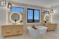 Beyond compare, this 4-bedroom, 3.5-bathroom custom-built 'Tofino' model redefines sophisticated living within the esteemed Spring Bank Hill, situated on a sprawling, pond-front lot. Crafted by Shane Homes, its captivating Farmhouse elevation, showcasing a harmonious blend of acrylic stucco and elegant stone, promises unrivaled curb appeal. Inside, a grand narrative of luxury unfolds. The 'Super Kitchen' is a culinary masterpiece, anchored by a commanding oversized island with a dramatic 3CM waterfall granite edge and 3-inch thick quartz, perfectly paired with a professional 30" gas cooktop and an integrated wall oven. A dedicated main-floor office provides a sophisticated workspace, and a convenient half bath enhances the main level's thoughtful design. The exquisite living room, warmed by a majestic 74" electric fireplace, flows gracefully to a spacious main-floor deck, prepped with a BBQ gas line for seamless outdoor entertaining. The master retreat offers a serene escape, featuring a spa-like ensuite with a Maax Jazz freestanding tub and a lavish curbless tiled shower adorned with 10MM glass. The upper level also features an inviting loft space, ideal for an additional lounge or creative pursuit. Journey to the fully developed walk-out lower level, where 9-foot ceilings elevate a massive living space, complete with a bespoke wet bar, an additional bedroom, and a modern bathroom, opening directly to your private outdoor oasis. This home prioritizes unrivaled comfort and modern convenience, featuring Black Fusion windows, stately 8-foot interior doors, an upsized HVAC system with AC, an EV charger rough-in, and robust 200-amp electrical service. Discover a residence where every element converges to create an experience of unparalleled distinction and enduring elegance. Schedule your private encounter with luxury today! (id:6769)