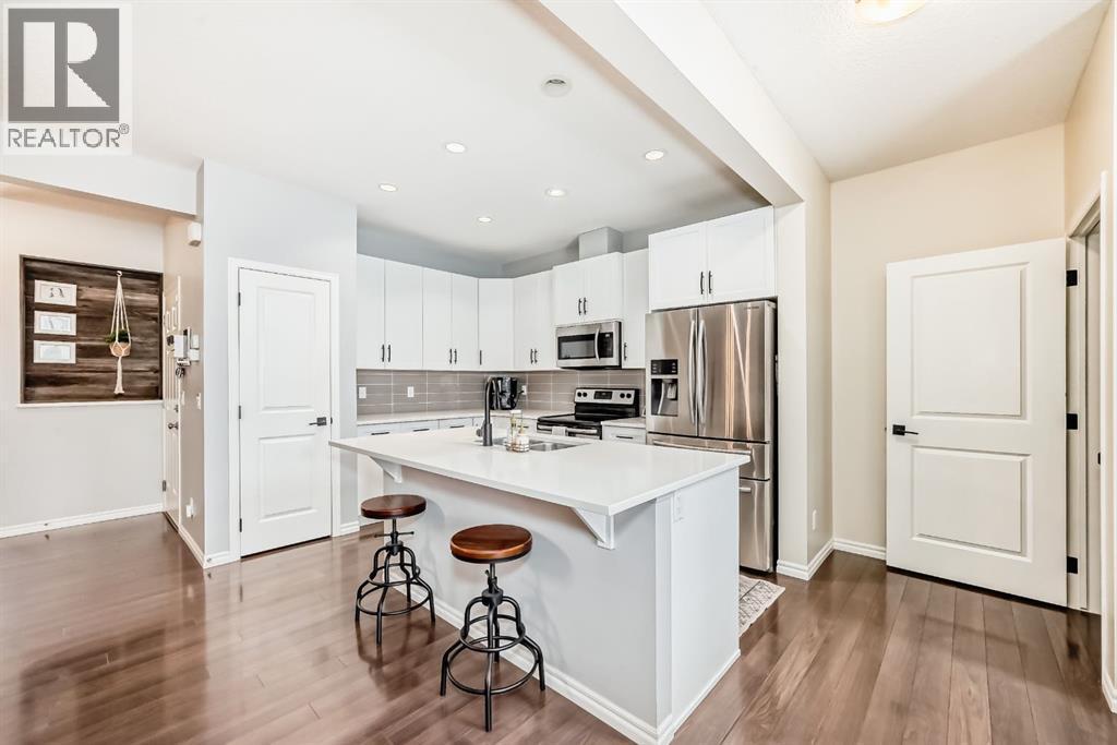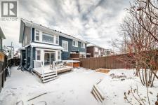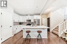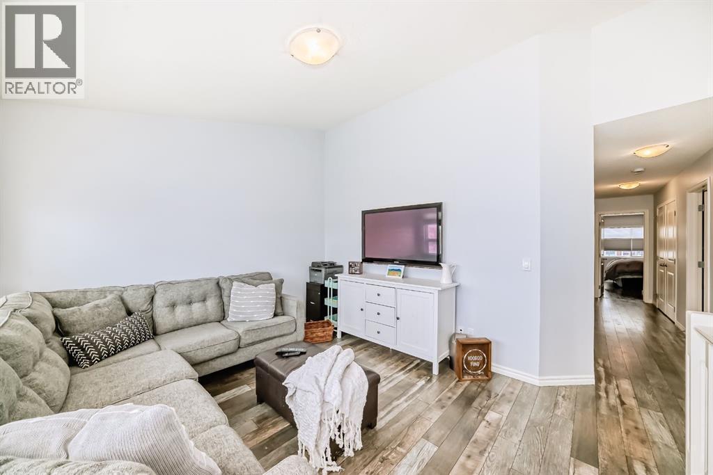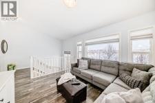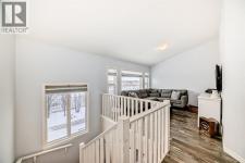 Welcome home to this exceptional semi-attached two-storey home located in the highly sought after community of River Song. This property is conveniently located walking distance to Bow Valley High School, kms of paths down to the Bow River, a quick drive into town over the Jack Tenant Bridge or out to the highway for great access to Calgary, Kananaskis and Banff National Park. This beautifully upgraded home includes an oversized single attached garage with storage and workshop area, large landscaped lot backing on green space and a HOT TUB! Inside you will find 4 bedrooms, 3.5 bathrooms and impressive 9’ ceilings on both the main and upper levels, ample space for the whole family! The modern kitchen offers stainless steel appliances, a tiled backsplash, white quartz countertops, a large centre island, and contemporary white cabinetry with storage, flowing seamlessly into the dining area and spacious living room highlighted by a natural gas fireplace with stacked stone surround, mantel and striking barn board feature wall to bring in plenty of warmth. The patio doors off the living room lead you to a fully landscaped, private backyard oasis ideal for outdoor entertaining. Including a hot tub where you can soak your worries away and a private fire pit area with paving stones and backing onto green space for ultimate peace and privacy. Upstairs, the generous primary retreat includes a walk-in closet and a 4-piece ensuite with double sinks, a large walk-in shower, alongside two additional bedrooms, a full 4-piece bathroom, convenient upper-level laundry, and a large bonus room with vaulted ceilings and views to the east. The newly developed basement showcases unique brick, barn board, and shiplap feature walls and includes a spacious recreation room perfect for guests, in-laws or the kids. You will also find the fourth bedroom and a 3-piece bathroom with in-floor heating! Book a showing today! (id:6769)