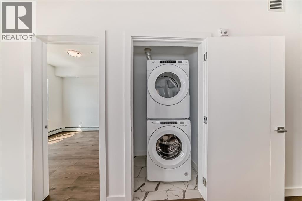 Skyview North by TRUMAN introduces an exceptional fourth-floor unit offering a bright and airy 2-Bedroom, 2-Bathroom layout in the well-established Skyview Ranch community, complete with one titled underground parking stall. Experience elevated living with luxury vinyl plank flooring and a designer lighting package throughout. The custom, chef-inspired kitchen features stainless steel appliances, soft-close cabinetry, and elegant quartz countertops. The primary bedroom boasts a spacious walk-in closet and 3-piece ensuite. Further conveniences include an additional Bedroom, 4-piece bathroom, in-suite washer and dryer, and window coverings. Skyview North is ideally situated near amenities like shopping at Sky Point Landing, green spaces, and extensive playgrounds. With easy access to Stoney and Deerfoot Trails, commuting is a breeze. Schedule your showing today to experience exceptional living at Skyview North! *Photo Gallery of a similar unit* (id:6769)