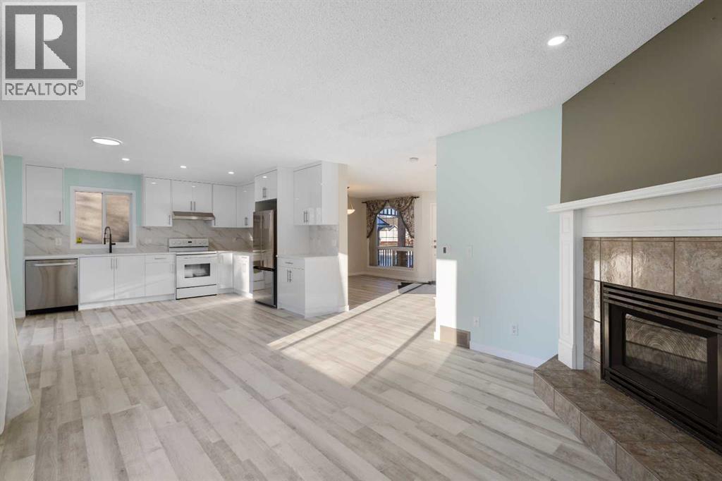 Immaculate former showhome on a quiet street in Coventry Hills with a sunny south-facing backyard. A charming front porch offers a warm welcome into the main floor, featuring a spacious foyer with a walk-in closet, a formal dining room, and a comfortable living room centered around a brick-facing gas fireplace—perfect for cozy evenings at home. The kitchen features quartz countertops and brand-new cabinetry, while the sunny nook opens onto a full-width composite deck, ideal for everyday living and casual entertaining. Main-floor laundry and a half bath add everyday convenience. Upstairs offers large windows, a relaxing primary bedroom with a 4-piece ensuite and walk-in closet, along with two additional well-sized bedrooms and a full bathroom. The developed basement provides a spacious rec room, an additional bedroom, a full bath, plus storage space. Step outside to enjoy the beautifully landscaped, south-facing backyard with mature trees, creating a peaceful outdoor retreat. Ideally located within walking distance to Northern Lights School, bus stops, and Country Hills Shopping Centre, close to all amenities with easy access to the airport, Deerfoot Trail, and Stoney Trail NW. A wonderful place to call home—move in and enjoy. (id:6769)