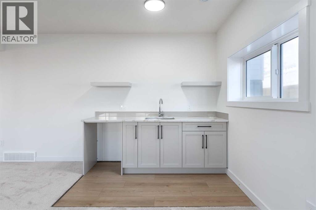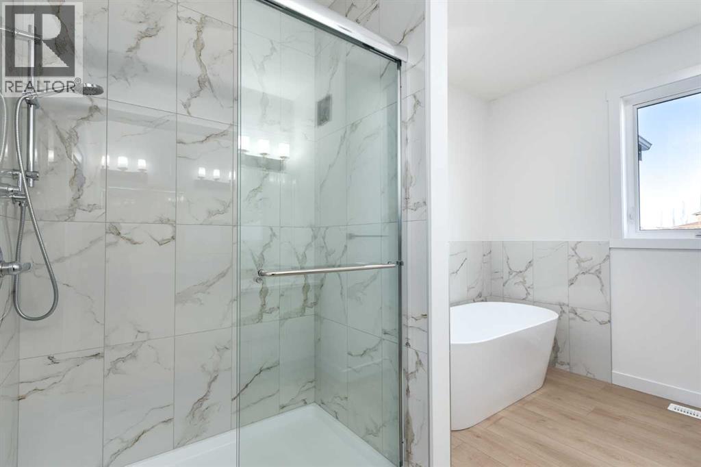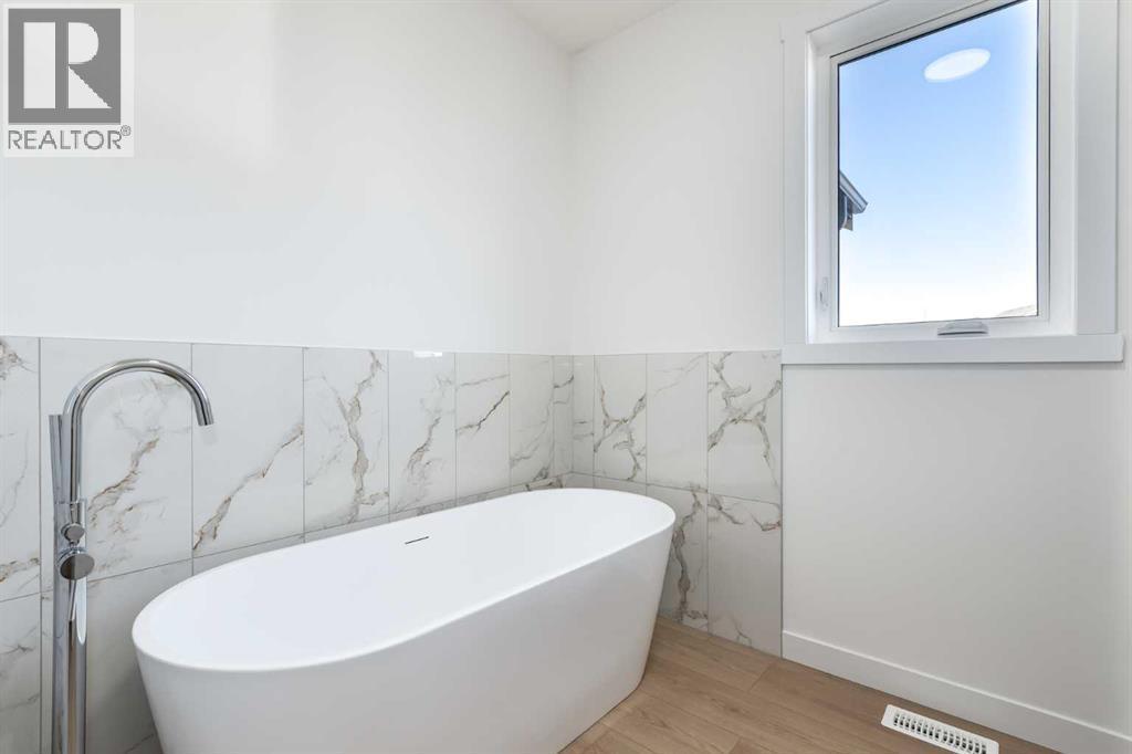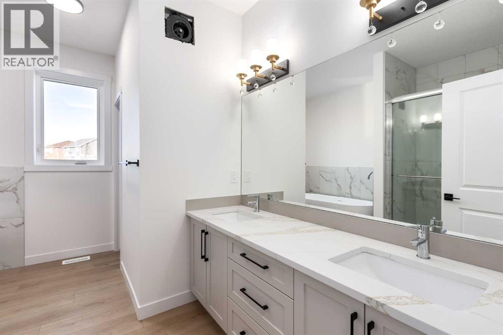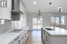 This is a rare family-sized bungalow with four big bedrooms and a triple attached garage. It is a fully finished 1507 sq ft walkout home in a great area overlooking a beautiful waterway and park, and it has premium finishes throughout. The main floor is a modern open plan with a large entry hall, 9’ ceilings, high quality flooring, and a covered 24’ x 10’ deck. The kitchen includes cabinets to the ceiling, quartz counters, under-mount sink, countertop lighting, select tiles, a large walk-in pantry, and all appliances are included. Also on the main floor is the spacious and open living/dining room, the primary bedroom, a laundry room, and a second bedroom or office. Deluxe appointments in the master suite include built in cabinetry in the walk-in closet, a big vanity with double sinks, and a soaker tub plus a 6' shower. The lower level has two more spacious bedrooms and a very big family room with a built-in wet bar. All rooms in this home have lots of natural light, and there are many extras including a 24’ x 10’ patio, two fireplaces, full concrete steps and a Hardie board exterior. Click the multimedia link for a virtual interactive 3D tour, plus floor plans and professional pictures. (id:6769)