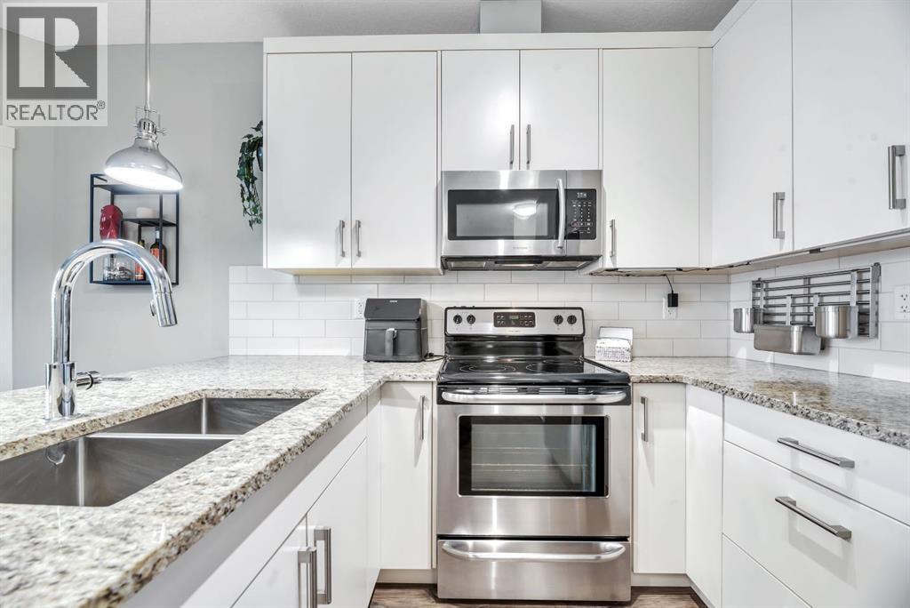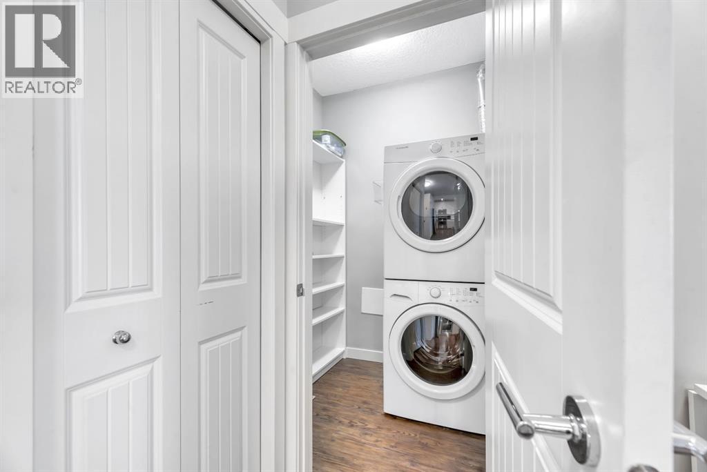 Beautiful, bright, and impeccably maintained, this spacious 2-bedroom, 2-bathroom condo offers serene mountain views with SW exposure off the balcony in the highly desired Cranston Ridge Condos. Built by award-winning Cardel Homes, this home showcases a thoughtfully designed open-concept layout ideal for both everyday living and entertaining.The kitchen is a standout, featuring a fresh, modern palette with white cabinetry, light stone countertops, stainless steel appliances, and an impressive pantry outfitted with pull out shelves—a rare find in condo living. An abundance of drawers, counter space and storage (including a lazy Susan in the corner cabinet) complete this highly functional space.Both bedrooms are generously sized, including a primary retreat with a well-appointed ensuite offering dual sinks, walk in shower, walk through closet and excellent storage including drawers. Added conveniences include in-suite laundry with stacked washer and dryer in a sizable storage room, and a titled, heated underground parking stall for year-round comfort and security.The location is exceptional, with easy access to scenic walking and biking paths along Cranston Ridge and nearby Fish Creek Park. Enjoy close proximity to schools, major roadways including Deerfoot Trail and Stoney Trail, and an abundance of amenities in both Cranston and the nearby Seton Urban District—home to shopping, professional services, the Seton YMCA, and the South Health Campus.Located in one of Calgary’s most family-friendly communities, Cranston offers parks, playgrounds, schools, and extensive green spaces. A fantastic opportunity not to be missed—book your private showing today. (id:6769)