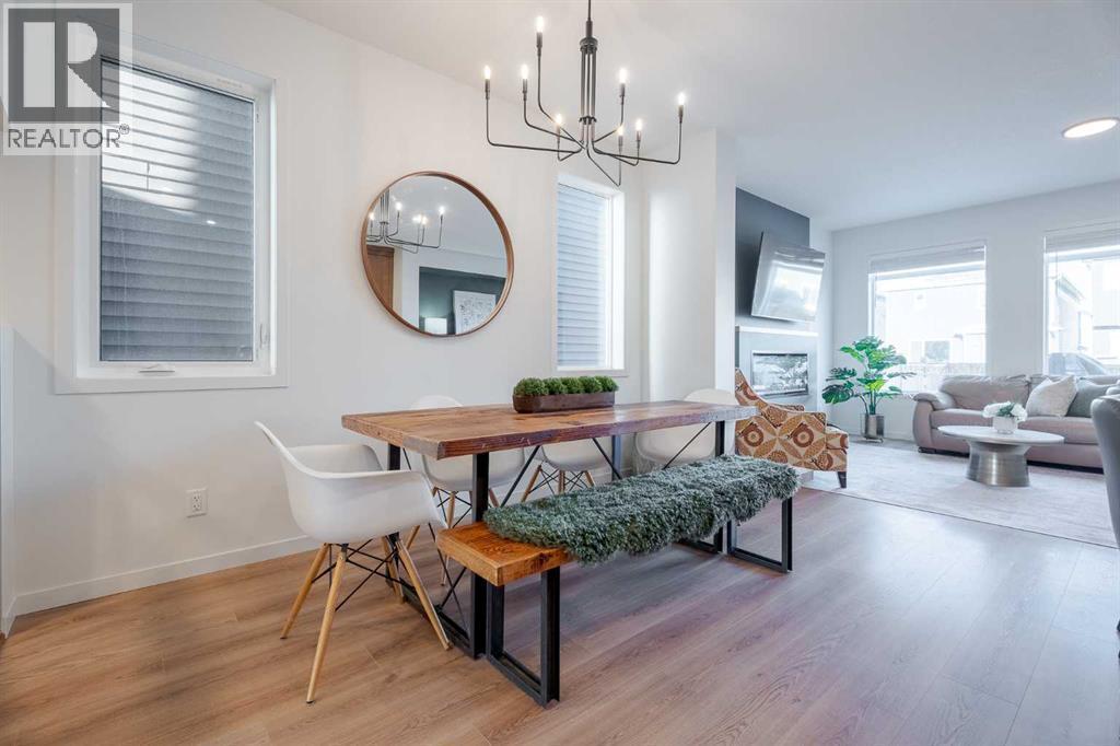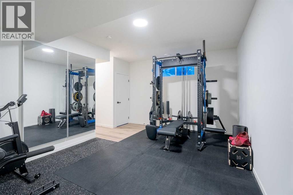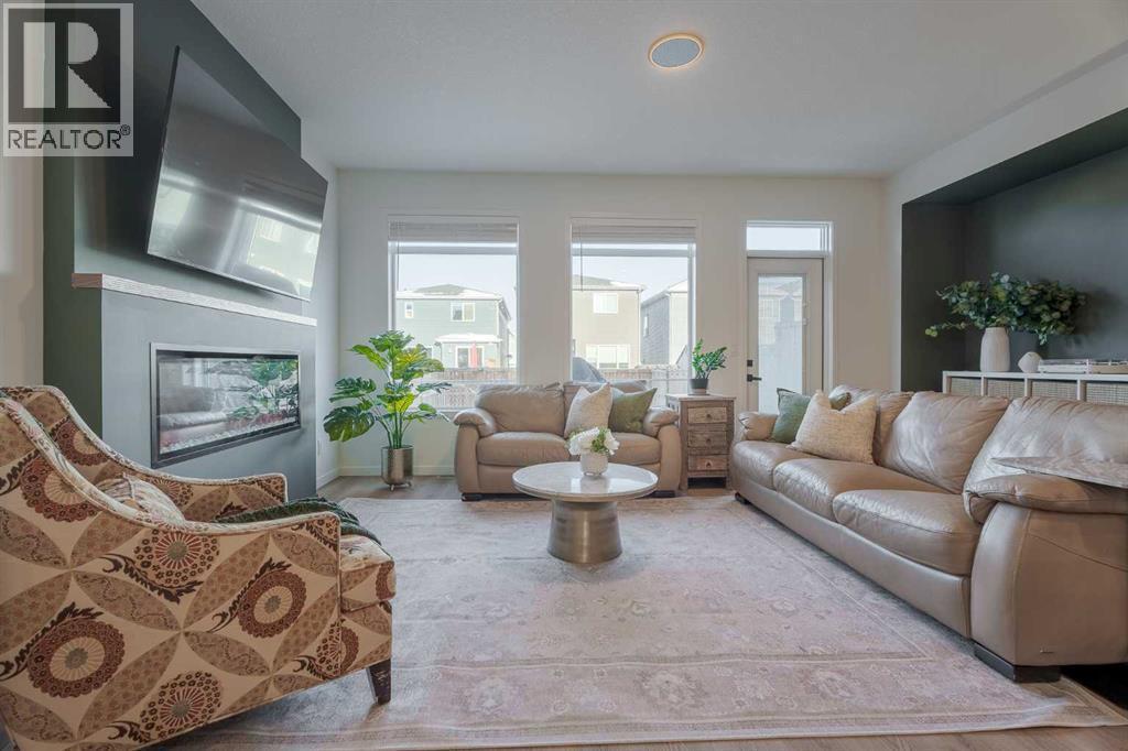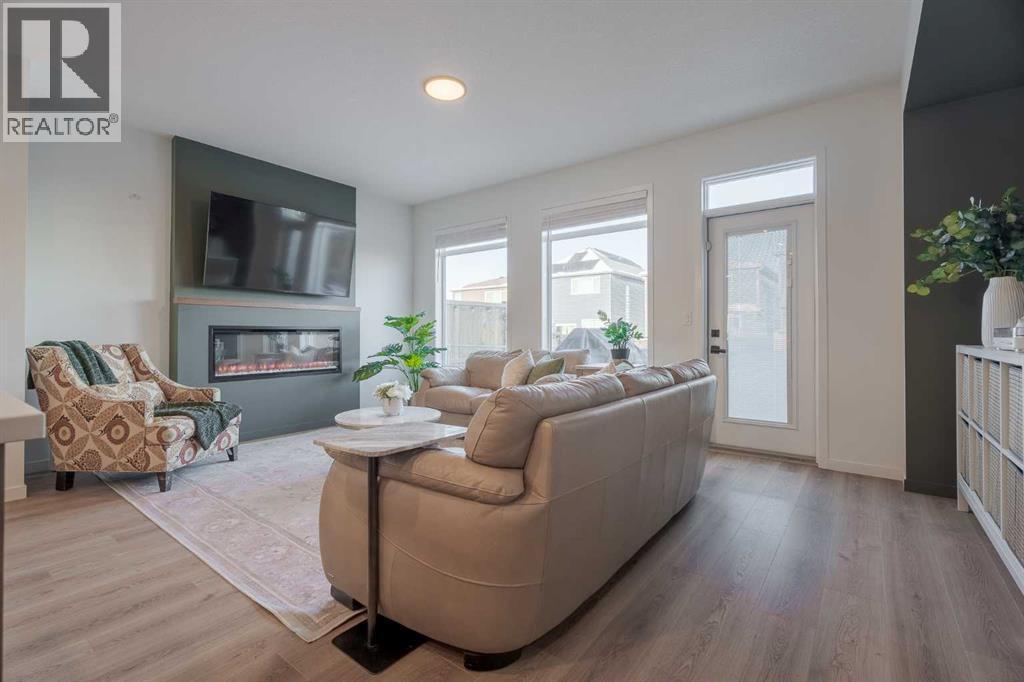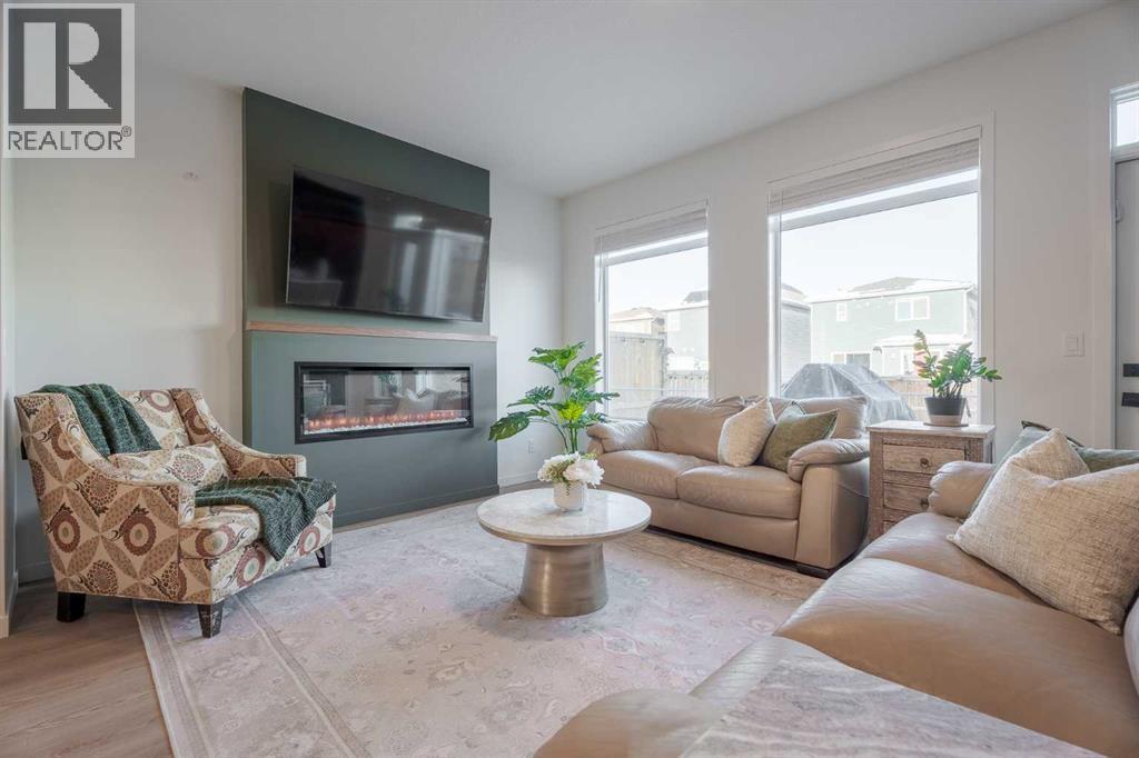 Welcome to an extraordinary residence in the prestigious southwest community of Belmont, where refined design and modern luxury converge. This newer, custom-built home is a masterclass in sophisticated living, thoughtfully curated with impeccable upgrades and meticulous attention to detail throughout, offering a truly elevated lifestyle. Upon entry, you are welcomed by an elegant, on-trend palette that beautifully complements the home’s timeless, earthy aesthetic. The stunning great room is anchored by upgraded wide-plank flooring and a striking 50-inch linear electric fireplace, complete with a bespoke oak mantel—an inviting focal point for intimate evenings and refined entertaining alike. The kitchen is nothing short of exceptional, designed to inspire both form and function. Highlights include a generous walk-in pantry with additional counter space, a show-stopping oversized island adorned with upgraded quartz countertops, and a custom designer backsplash. Floor-to-ceiling oak cabinetry, enhanced with additional drawers and storage, pairs seamlessly with premium appliances, including a gas range and counter-depth refrigerator, showcasing craftsmanship of enduring beauty. The main level is completed by a discreet and stylish powder room, ideal for guests. Upstairs, the private primary retreat is bathed in natural light and features a spacious walk-in closet and a spa-inspired ensuite with an oversized shower. Two additional well-appointed bedrooms share a beautifully designed family bathroom, offering comfort and elegance for family members or guests. The upper-level laundry room elevates everyday living with full-length hanging space and solid shelving, transforming routine tasks into a refined experience. The professionally designed lower level extends the home’s versatility, featuring a spacious family room—currently staged as a private gym—along with a four-piece bathroom and a fourth bedroom, perfect for guests or extended family. Thoughtfully upgraded lighti ng throughout the home creates a warm, inviting ambiance, enhancing every space. Outside, the fully landscaped yard adds exceptional curb appeal and provides a welcoming outdoor setting ideal for entertaining and relaxation. Set within the sought-after Belmont community, this home offers an unparalleled lifestyle defined by contemporary design, functional elegance, and a strong sense of community. Residents enjoy scenic pathways, playgrounds, a forthcoming outdoor shopping centre, future recreation facilities, a library, and convenient access to major roadways including Macleod Trail and Stoney Trail—ensuring effortless travel to downtown Calgary and the Rocky Mountains. This is a rare opportunity to claim a truly luxurious haven in one of Calgary’s most exciting new communities. (id:6769)