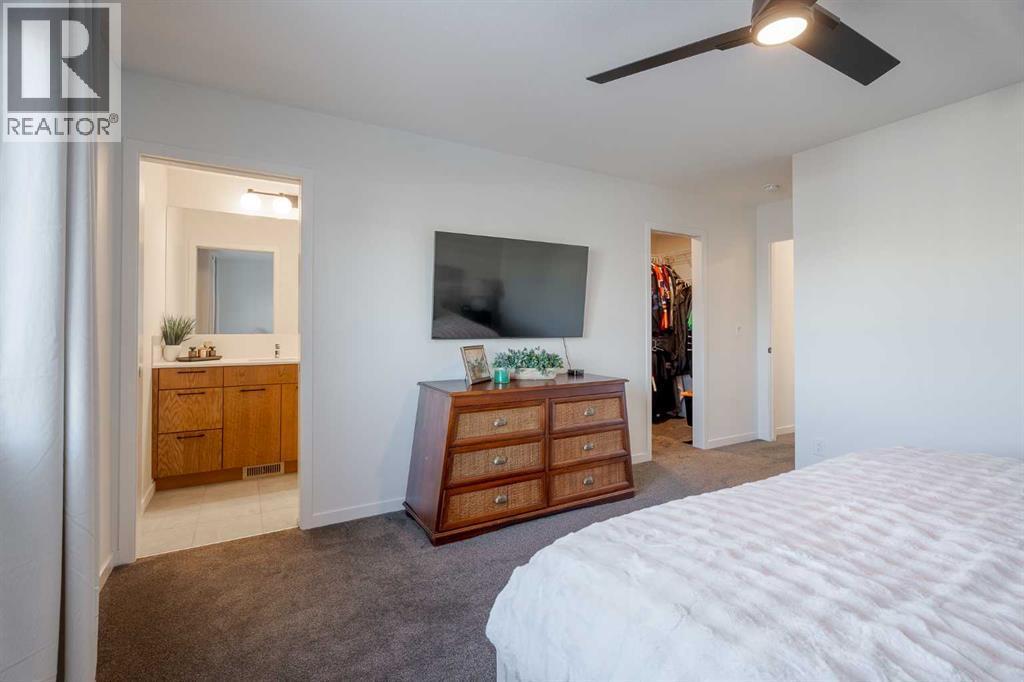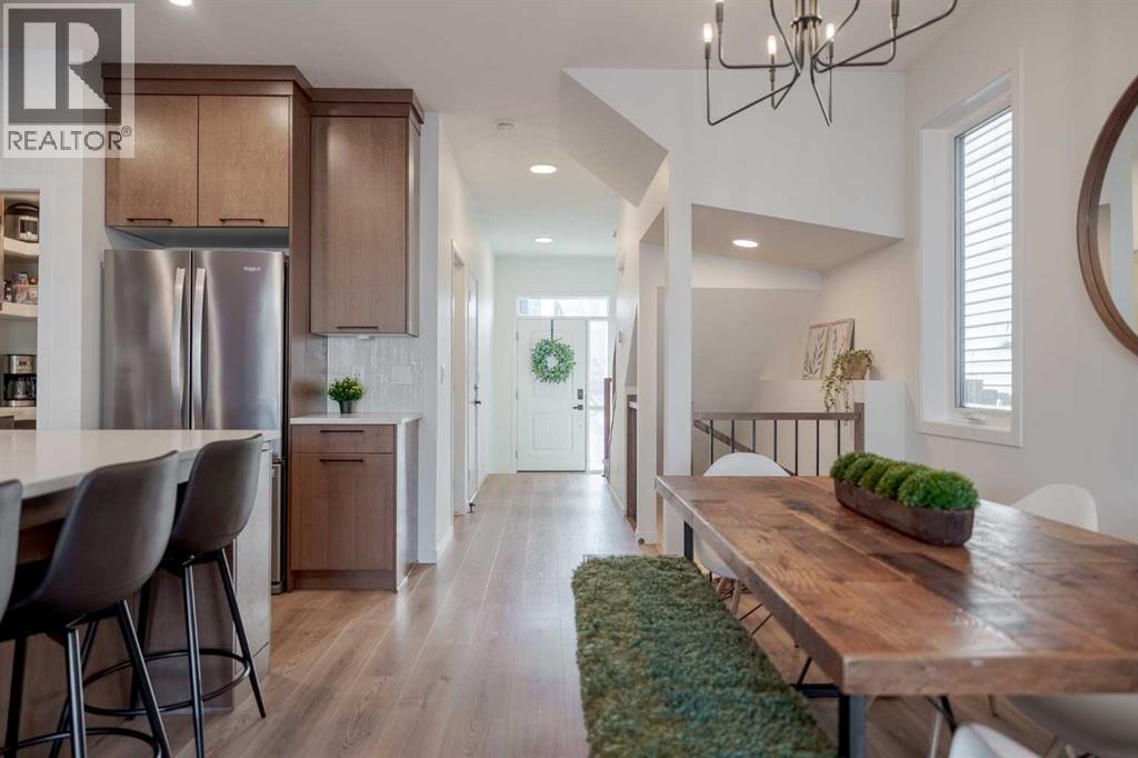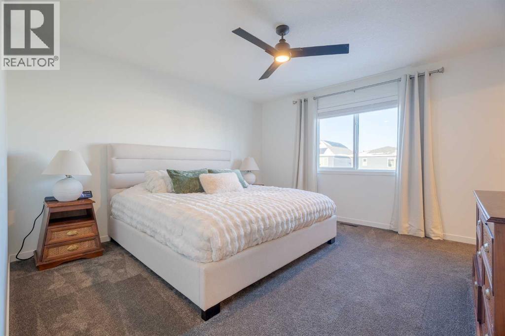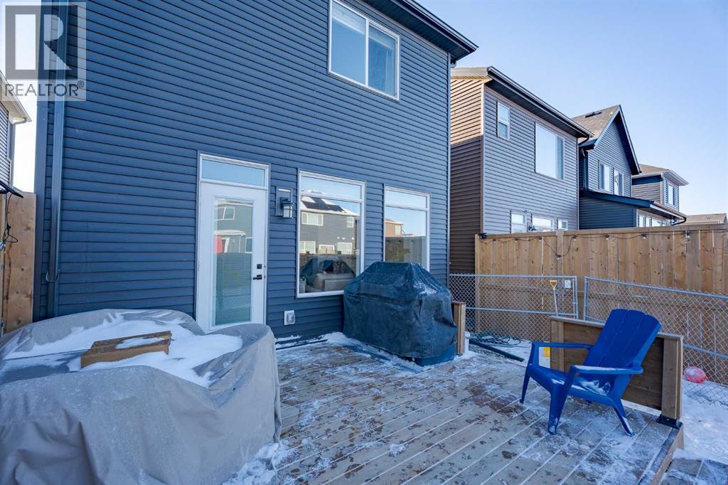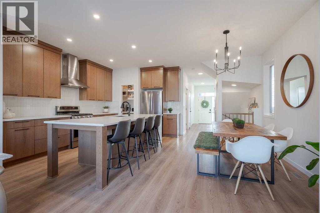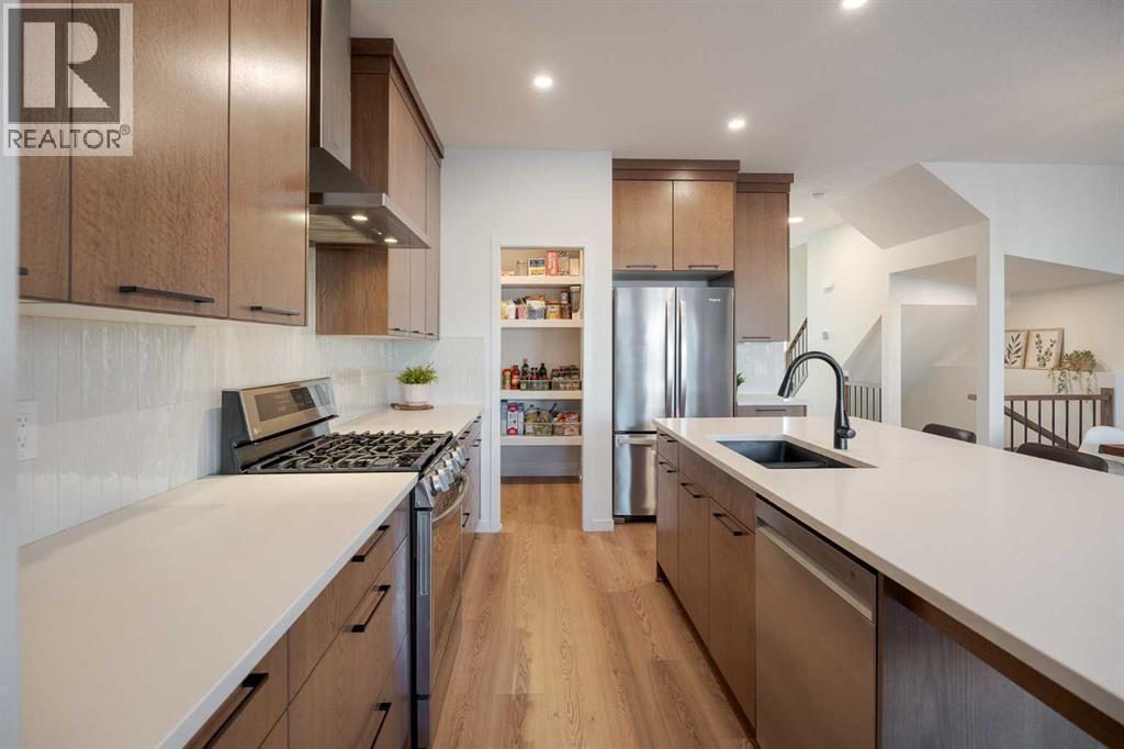 Welcome to an extraordinary residence in the prestigious southwest community of Belmont, where refined design and modern luxury converge. This newer, custom-built home is a masterclass in sophisticated living, thoughtfully curated with impeccable upgrades and meticulous attention to detail throughout, offering a truly elevated lifestyle. Upon entry, you are welcomed by an elegant, on-trend palette that beautifully complements the home’s timeless, earthy aesthetic. The stunning great room is anchored by upgraded wide-plank flooring and a striking 50-inch linear electric fireplace, complete with a bespoke oak mantel—an inviting focal point for intimate evenings and refined entertaining alike. The kitchen is nothing short of exceptional, designed to inspire both form and function. Highlights include a generous walk-in pantry with additional counter space, a show-stopping oversized island adorned with upgraded quartz countertops, and a custom designer backsplash. Floor-to-ceiling oak cabinetry, enhanced with additional drawers and storage, pairs seamlessly with premium appliances, including a gas range and counter-depth refrigerator, showcasing craftsmanship of enduring beauty. The main level is completed by a discreet and stylish powder room, ideal for guests. Upstairs, the private primary retreat is bathed in natural light and features a spacious walk-in closet and a spa-inspired ensuite with an oversized shower. Two additional well-appointed bedrooms share a beautifully designed family bathroom, offering comfort and elegance for family members or guests. The upper-level laundry room elevates everyday living with full-length hanging space and solid shelving, transforming routine tasks into a refined experience. The professionally designed lower level extends the home’s versatility, featuring a spacious family room—currently staged as a private gym—along with a four-piece bathroom and a fourth bedroom, perfect for guests or extended family. Thoughtfully upgraded lighti ng throughout the home creates a warm, inviting ambiance, enhancing every space. Outside, the fully landscaped yard adds exceptional curb appeal and provides a welcoming outdoor setting ideal for entertaining and relaxation. Set within the sought-after Belmont community, this home offers an unparalleled lifestyle defined by contemporary design, functional elegance, and a strong sense of community. Residents enjoy scenic pathways, playgrounds, a forthcoming outdoor shopping centre, future recreation facilities, a library, and convenient access to major roadways including Macleod Trail and Stoney Trail—ensuring effortless travel to downtown Calgary and the Rocky Mountains. This is a rare opportunity to claim a truly luxurious haven in one of Calgary’s most exciting new communities. (id:6769)