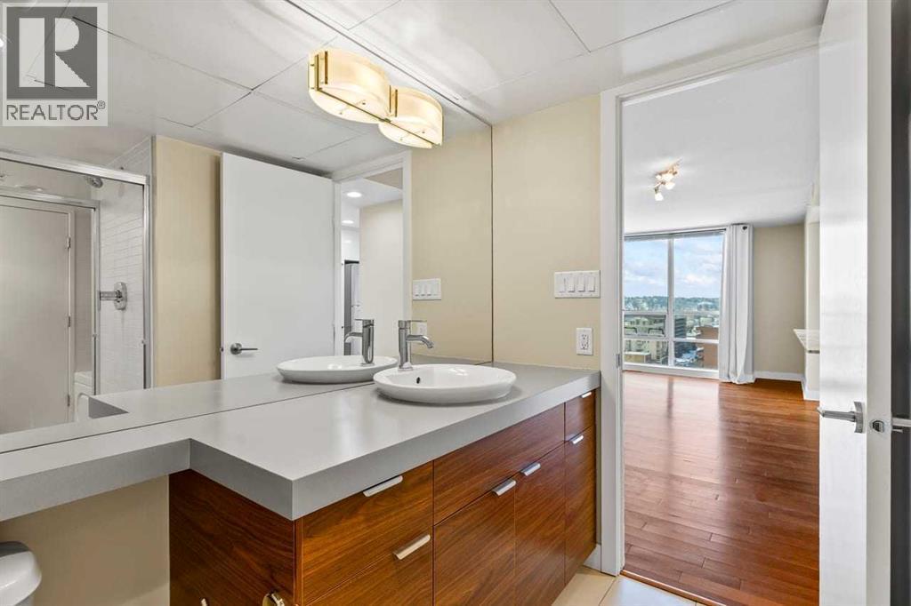 Experience refined living at Stella in this highly desirable 2-bedroom + den, 2-bath residence offering breathtaking, unobstructed downtown views from an exceptional 12th-floor corner location with floor-to-ceiling windows that flood the home with natural light. Concierge service welcomes you at the lobby, while a generous foyer leads to contemporary hardwood and tile flooring, complemented by warm, luxurious carpet in the bedrooms and custom California Closets throughout. The chef-inspired Ramsay kitchen overlooks the great room and features stainless steel appliances, high-gloss white cabinetry, granite countertops, and a large breakfast island, ideal for entertaining and everyday living. Recently replaced ST fridge and insuite stacked washer and dryer set are a true bonus. The primary and second bedrooms are thoughtfully separated by a private den with pocket-door access, and the well-designed ensuite offers a walk-through shower with convenient access to both bathrooms. Enjoy sweeping views of the Bow River Valley to the west, Nose Hill to the north, and downtown to the east, with a west-facing balcony showcasing stunning mountain vistas. Additional highlights include in-suite laundry, a heated underground parking stall (#207 on P2), a separate storage locker (#28), access to a fitness center and guest lounge, and excellent transit connectivity to all areas of the city - contemporary design and vibrant urban living truly define this exceptional home. Pets are allowed with approval. Drive buy 1110-11 St S.W. for your private showing (id:6769)