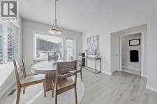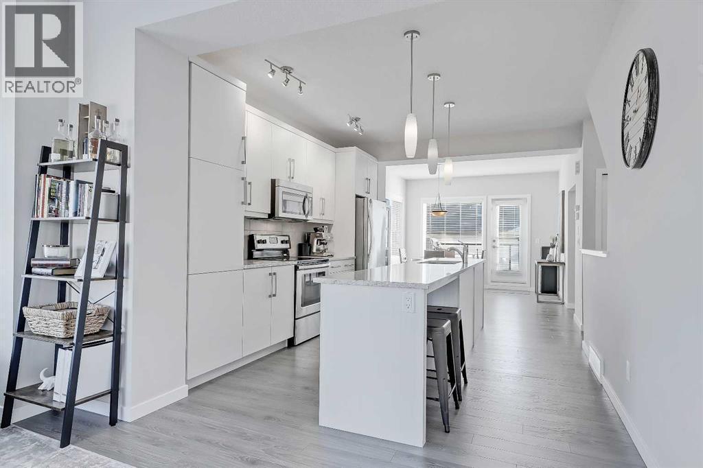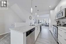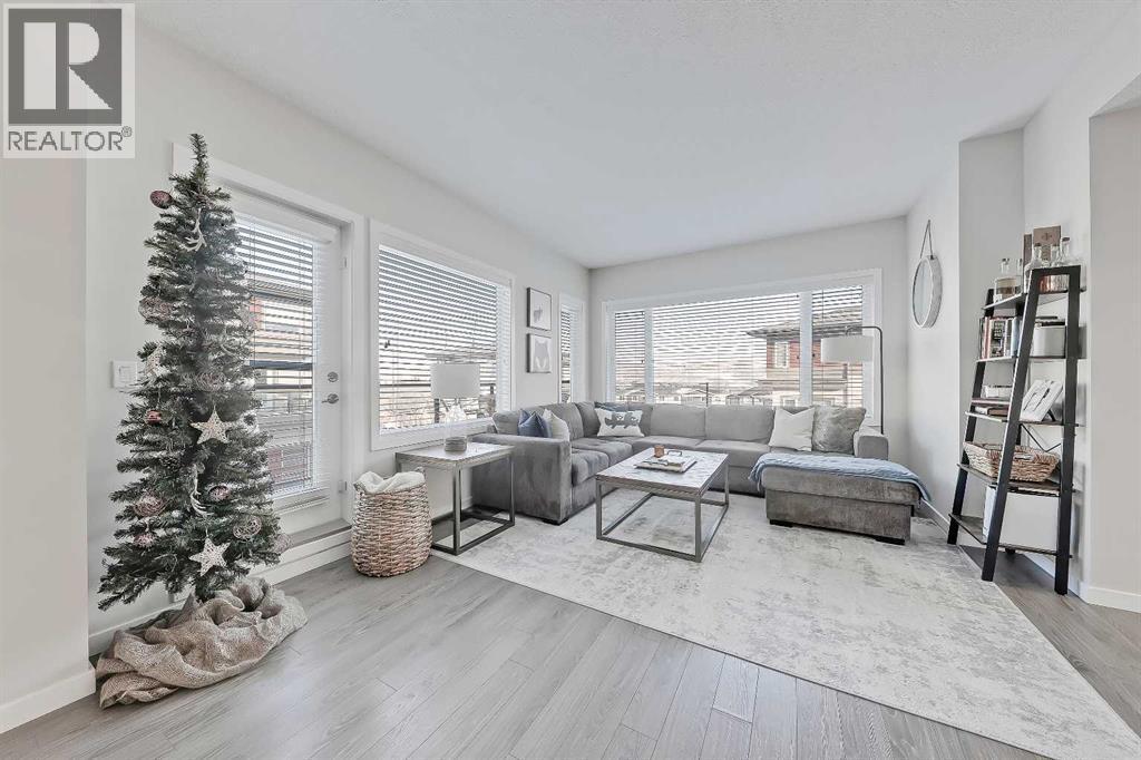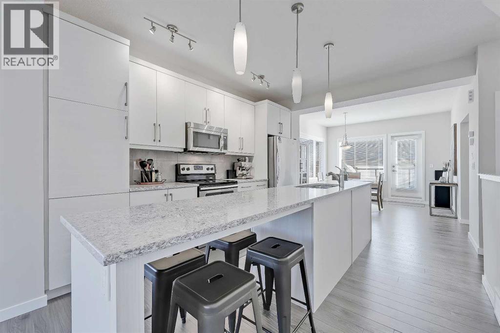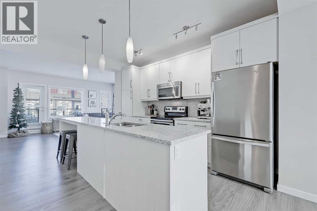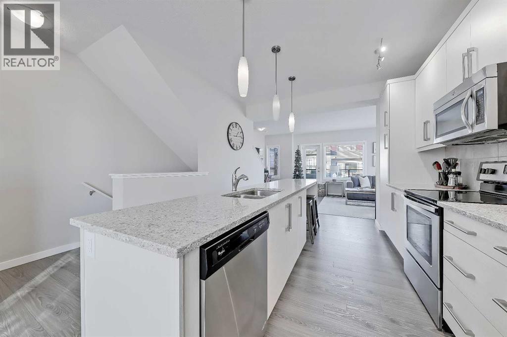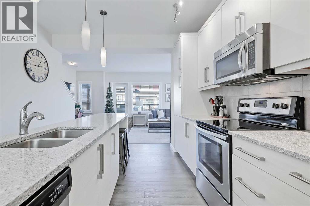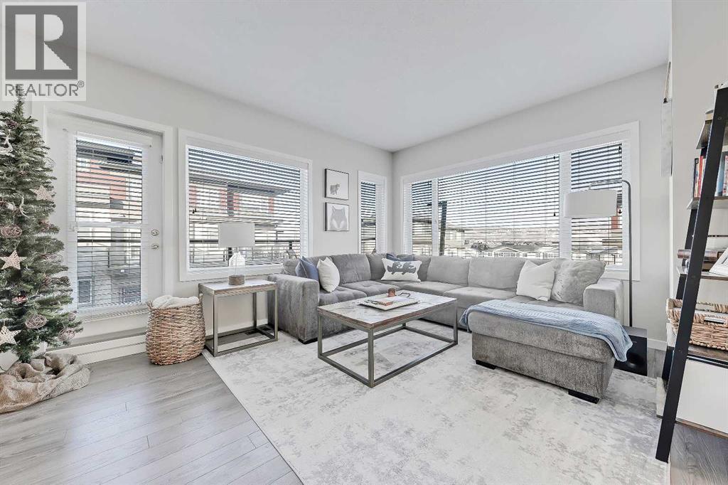 Welcome to refined townhome living, set within one of Cochrane’s most scenic and thoughtfully planned communities! Backing onto rolling natural landscapes with elevated sightlines, this modern three-storey residence offers the rare balance of contemporary design, functional space, and everyday comfort, all just minutes from downtown Cochrane and the Bow River pathway system.Spanning over 1,715 sq ft of developed living space, this home is bright, airy, and beautifully laid out across three levels, designed for both daily living and entertaining. The main floor features an open-concept design anchored by a sleek white kitchen with full-height cabinetry, stainless steel appliances, and generous quartz countertops. Clean lines, soft neutral tones, and wide-plank flooring create a calm, modern backdrop that feels effortless and inviting. The dining area is perfectly positioned between the kitchen and upper balcony, creating an easy flow for everyday meals and summer entertaining, with space for outdoor dining and BBQs. On the opposite side, the living room is set at the front of the home, offering a bright, open space framed by large windows and an additional private balcony. This separation creates distinct zones for dining and relaxing, while maintaining an airy, connected feel throughout the main level.Upstairs, the private living quarters are smartly arranged. The primary suite is bright and inviting, complete with a walk-in closet and a well-appointed ensuite featuring a glass-enclosed shower and contemporary finishes. Two additional bedrooms provide excellent versatility for family, guests, or a dedicated home office, all supported by a full four-piece bathroom. Thoughtful proportions and natural light continue throughout the upper level, creating a sense of space rarely found in townhome living.The ground floor adds valuable functionality with an oversized tandem garage offering ample room for vehicles, bikes, storage, or seasonal gear. This level also incl udes mechanical space and direct access to the home, making daily routines seamless and practical. Beyond the home itself, River Heights is known for its elevated setting, peaceful surroundings, and strong sense of community. Residents enjoy quick access to walking and biking trails, playgrounds, schools, and local amenities, while still being moments from Cochrane’s historic downtown, cafés, and shops. With Calgary less than 30 minutes away and the Rocky Mountains within easy reach, this location offers a lifestyle that blends convenience with natural beauty.Modern, low-maintenance, and thoughtfully designed, #408, 501 River Heights Drive is an exceptional opportunity to own a turnkey townhome in one of Cochrane’s most desirable communities. A home that feels current, comfortable, and effortlessly livable. (id:6769)