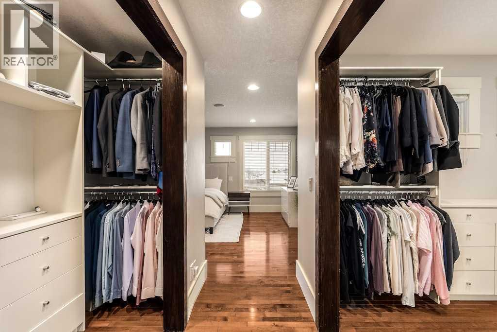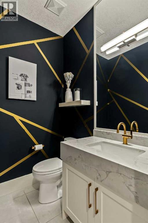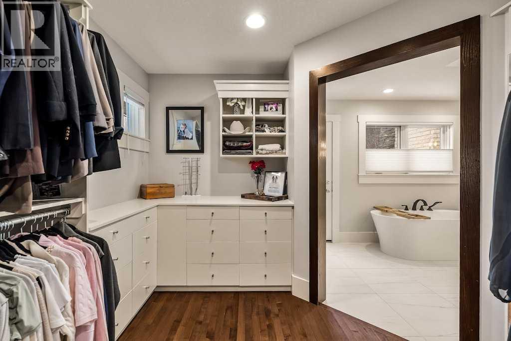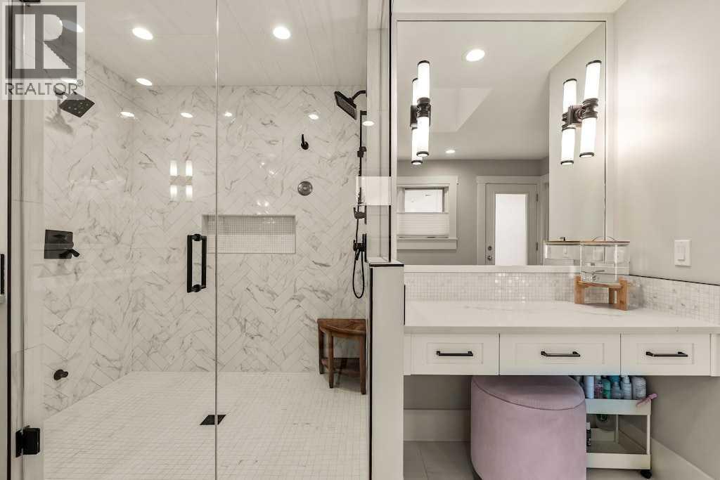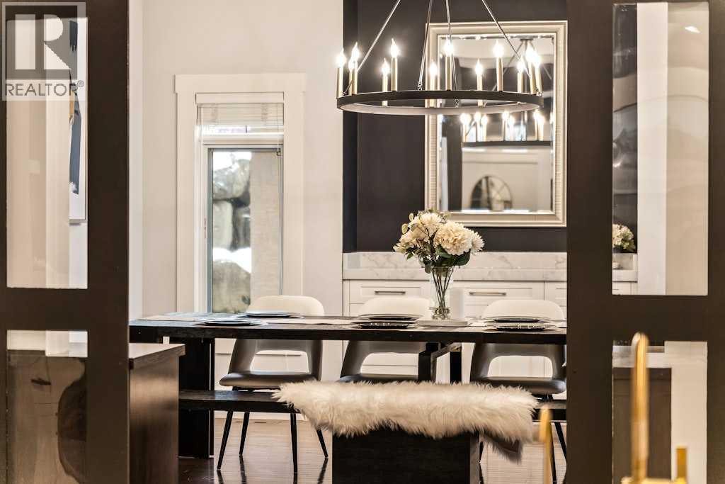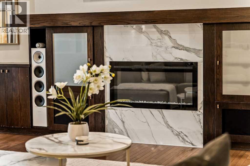 Extensively renovated and impeccably appointed, this architecturally striking five-level split is positioned on a quiet cul-de-sac in Signal Hill, offering almost 3,500sqft above grade and over 5,500sqft total, on a multi-tiered pie shaped lot with multiple outdoor living areas and mountain views. The heart of the home is a the huge custom created kitchen which has been thoughtfully renovated and designed with extensive built-ins, premium stone countertops with a 2.5" mitre edge, and a high-end appliance package including a 48" Monogram gas range, Miele dishwasher, separate built-in JennAir refrigerator and freezer units. A dedicated wine bar with custom cabinetry, new countertops, built-in wine fridge, floating shelves, and hanging wine rack seamlessly connects the kitchen to the dining and living spaces, making it ideal for both everyday living and entertaining. The main living areas are enhanced by custom millwork, updated lighting, and a new fireplace with tile surround, while the dining room features custom built-in cabinetry and lighting. The main floor also features a large private office, tastefully designed powder room, the spacious welcoming foyer, huge mudroom and access to the oversized attached garage. Ceiling heights add to the sense of scale, with approximately 13ft ceilings in the entry, 11ft ceilings on the main level, and 9ft ceilings in the basement. The upper level is anchored by a spacious primary retreat with coffee bar, two walk-in closets full of built-ins, access to the rooftop patio showcasing mountain views, and the ensuite complete with oversized double headed steam shower, dual vanity, heated tile, extra deep soaker tub and designated hair/makeup vanity. Two spacious additional bedrooms, connected by a jack-and-jill bathroom, as well as one of two laundry rooms complete this level. The basement rec room is wide-open and large enough to accommodate the needs of almost anything you can imagine, while still offering a designated gym space, arts&craft room, teen bedroom with its own hangout space, full bathroom, second laundry room and seemingly endless storage space. Practical upgrades include; Hunter Douglas blinds throughout, a radon mitigation system installed in 2022, a new furnace (2024), recently refinished roof top balcony with new TufDek waterproof vinyl decking and the addition of a new 8’ x 8’ patio door enhance flow to the huge outdoor space off the upper living/flex room. Outdoor living is a standout feature, offering multiple exterior spaces including a front porch with gas hookup, oversized entertaining deck, rooftop deck, fenced grass yard, and dedicated dog run. Located close to schools, parks, shopping, and westside amenities, this home represents a rare opportunity to own an extensively renovated, move-in-ready property in one of Calgary’s most established communities. (id:6769)