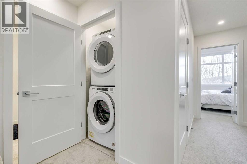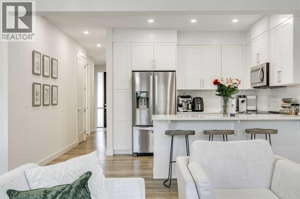 Here it is! Exceptionally private and quiet ravine-backing home. Original owners have meticulously maintained this home, it's in excellent condition. Rare corner unit offering extra privacy, more natural light, and fewer shared walls. The ravine offers an extremely private and quiet setting with peaceful views and no neighbours behind. Fully-developed walk-out basement with a private concrete patio — ideal for additional living space, a home office, or guest suite. 1,470 sq. ft. above grade, plus a fully developed basement with an additional 543 sq. ft.; over 2000 developed. Basement includes a 4-piece bathroom. 9-foot ceilings throughout the main living areas with a modern, open-concept design. Vaulted ceilings in the primary bedroom, creating a bright and spacious retreat, and includes a private ensuite washroom with dual sinks. Large windows throughout the home, flooding the space with abundant natural light. Extra-large single attached garage with more than sufficient space for storage. Upgrades include: bright lighting throughout the home, kitchen cabinets and backsplash, stair railing, quartz countertops in the kitchen and all washrooms, modern appliances and more. Neutral, clean colours throughout, making it easy to decorate or maintain a modern design. Backing onto natural green space with two scenic ponds just steps away, perfect for walks or biking with extensive trails nearby, ideal for families, pet owners, and outdoor enthusiasts. Located in the highly family-friendly Crestmont community, known for its welcoming atmosphere; multiple playgrounds, and a shared community centre hosting regular events and activities, including a playground and a splash-park. Daycare and local shops just a 1-minute walk away, offering unmatched convenience. Multiple quick and easy access points to Highway 1, making mountain getaways effortless. Canmore in under 1 hour, Bragg Creek in under 30 minutes. Winsport just minutes away. Proactive condo board. Condo management handle s snow removal and landscaping year-round, doing an excellent and timely job, always completing tasks as soon as possible. Extremely low utility bills thanks to ultra-efficient heating, insulation, and an HRV system. High-capacity water softener included. Rough-in for air conditioning already in place. Visitor parking available for friends and family. Gas BBQ hookup on the upper balcony. Lower walk-out patio on a private concrete pad, ideal for relaxing while enjoying the ravine’s privacy and quiet. (id:6769)