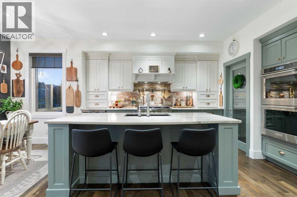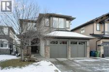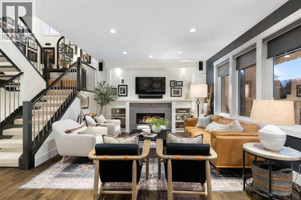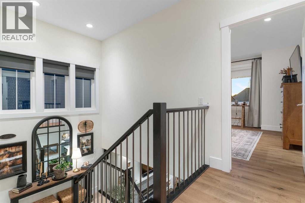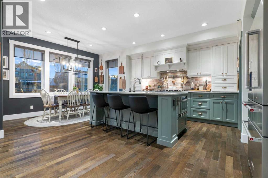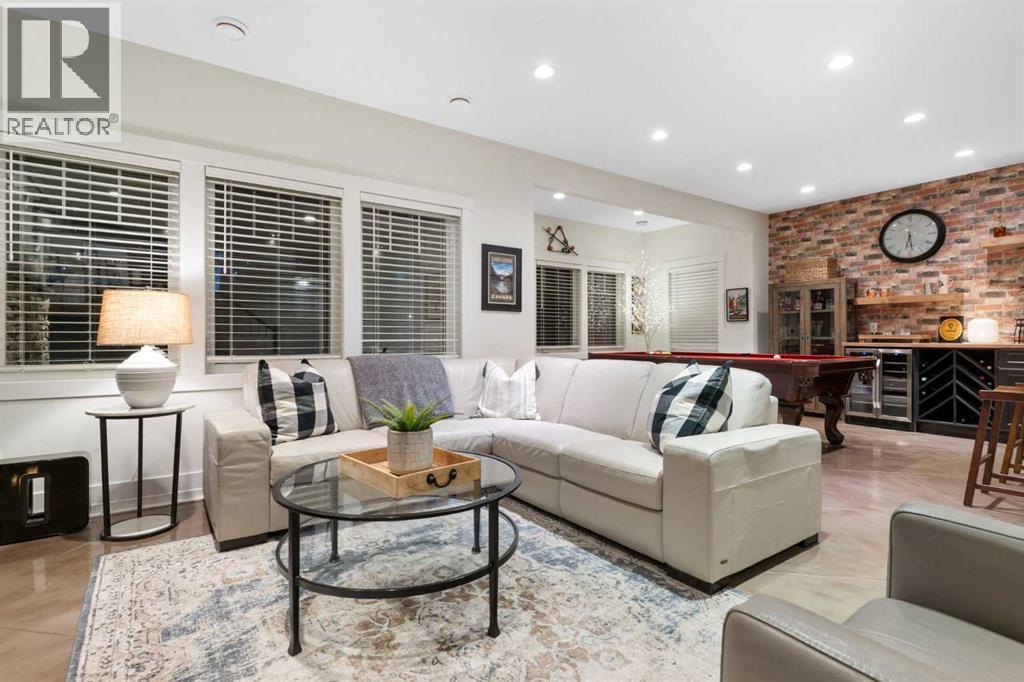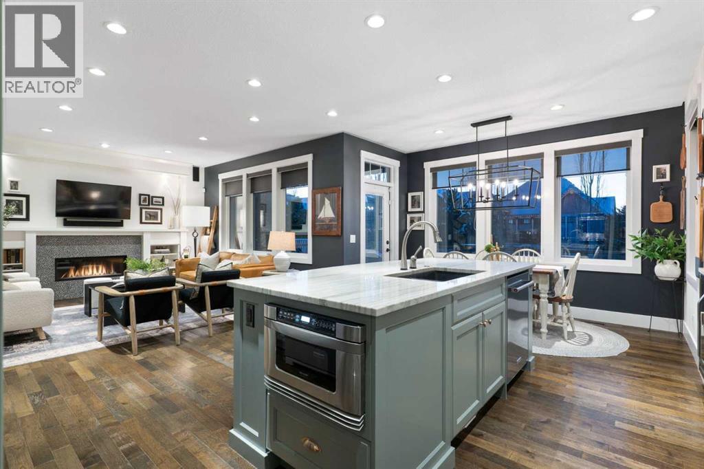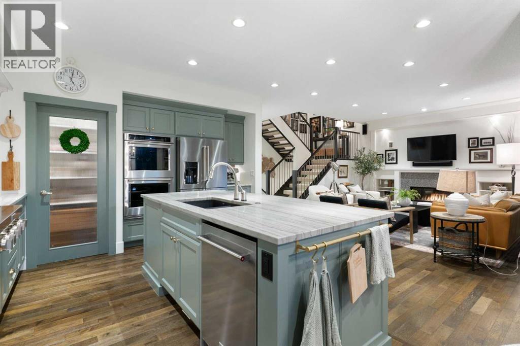 Hello, Gorgeous! Welcome to 267 Coopers Hill, a west-facing walkout estate home backing directly onto the pathway system in the prestigious community of Coopers Crossing. Located on a quiet street, this beautifully upgraded residence offers timeless design, thoughtful functionality, and refined finishes throughout. Nine foot ceilings span all three levels, while expansive windows fill the home with natural light and frame peaceful green space views.The main level features a welcoming sunken entry with travertine tile and custom millwork, leading into an open concept living space anchored by a chef-inspired kitchen. Quartz countertops, full-height cabinetry with crown molding, a striking backsplash, and a premium appliance package updated in 2024 including a gas cooktop and double wall ovens create a space ideal for entertaining. The dining area opens onto a full-width west-facing deck, while the living room showcases custom built-ins surrounding a natural gas fireplace.Upstairs, a spacious bonus room, three generously sized bedrooms, and upper-level laundry provide a functional family layout. The primary retreat features vaulted ceilings, a custom walk-in closet, and a spa-inspired ensuite with heated floors, dual sinks, a soaker tub, and a glass shower. The fully developed walkout basement offers polished concrete floors with in-floor heating, a gas fireplace, a custom bar area, a fourth bedroom, and a three-piece bathroom. The covered walkout patio includes a third gas fireplace enclosed by phantom motorized screens and is prewired for a future hot tub or sauna.The professionally landscaped west backyard offers mature trees, privacy, and direct access to the pathway system. Over 120,000 dollars has been invested in upgrades since 2022, including new appliances in 2024 and replacement of the furnace and hot water tank in 2022, making this home truly turnkey. Additional highlights include gemstone exterior lighting, central vacuum, water softener, upgraded ins ulation, and a fully finished heated garage with epoxy flooring and extensive storage. This exceptional property offers elevated estate living in one of Airdrie’s most desirable neighbourhoods. (id:6769)