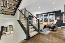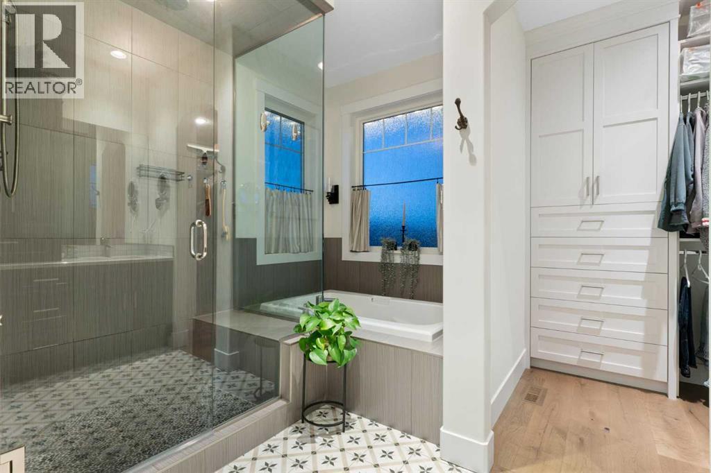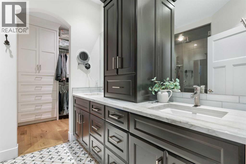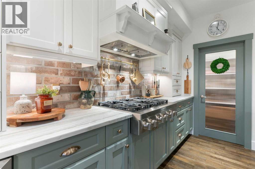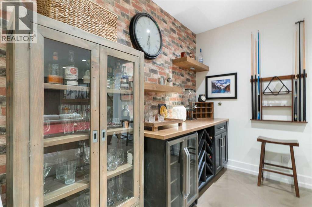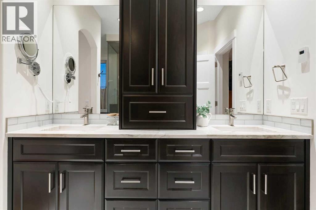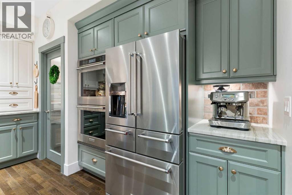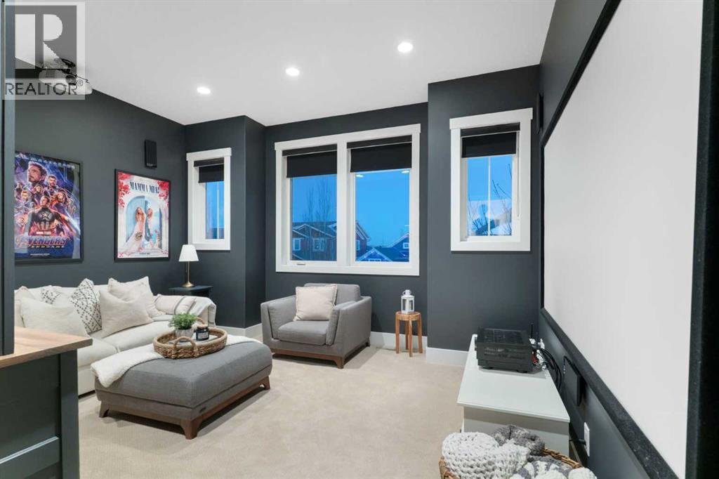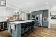 Hello, Gorgeous! Welcome to 267 Coopers Hill, a west-facing walkout estate home backing directly onto the pathway system in the prestigious community of Coopers Crossing. Located on a quiet street, this beautifully upgraded residence offers timeless design, thoughtful functionality, and refined finishes throughout. Nine foot ceilings span all three levels, while expansive windows fill the home with natural light and frame peaceful green space views.The main level features a welcoming sunken entry with travertine tile and custom millwork, leading into an open concept living space anchored by a chef-inspired kitchen. Quartz countertops, full-height cabinetry with crown molding, a striking backsplash, and a premium appliance package updated in 2024 including a gas cooktop and double wall ovens create a space ideal for entertaining. The dining area opens onto a full-width west-facing deck, while the living room showcases custom built-ins surrounding a natural gas fireplace.Upstairs, a spacious bonus room, three generously sized bedrooms, and upper-level laundry provide a functional family layout. The primary retreat features vaulted ceilings, a custom walk-in closet, and a spa-inspired ensuite with heated floors, dual sinks, a soaker tub, and a glass shower. The fully developed walkout basement offers polished concrete floors with in-floor heating, a gas fireplace, a custom bar area, a fourth bedroom, and a three-piece bathroom. The covered walkout patio includes a third gas fireplace enclosed by phantom motorized screens and is prewired for a future hot tub or sauna.The professionally landscaped west backyard offers mature trees, privacy, and direct access to the pathway system. Over 120,000 dollars has been invested in upgrades since 2022, including new appliances in 2024 and replacement of the furnace and hot water tank in 2022, making this home truly turnkey. Additional highlights include gemstone exterior lighting, central vacuum, water softener, upgraded ins ulation, and a fully finished heated garage with epoxy flooring and extensive storage. This exceptional property offers elevated estate living in one of Airdrie’s most desirable neighbourhoods. (id:6769)