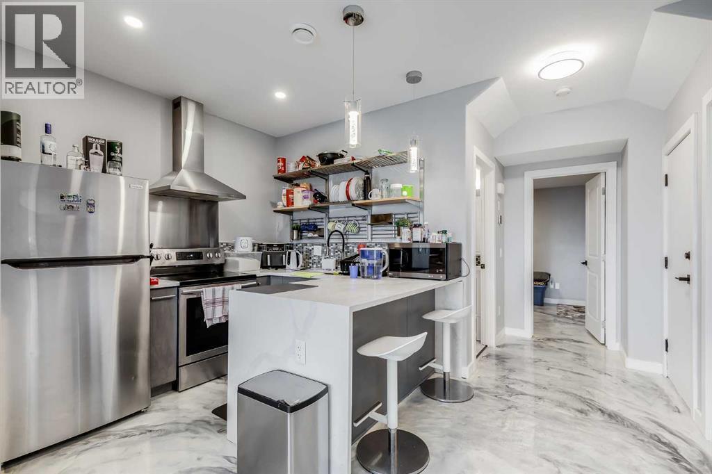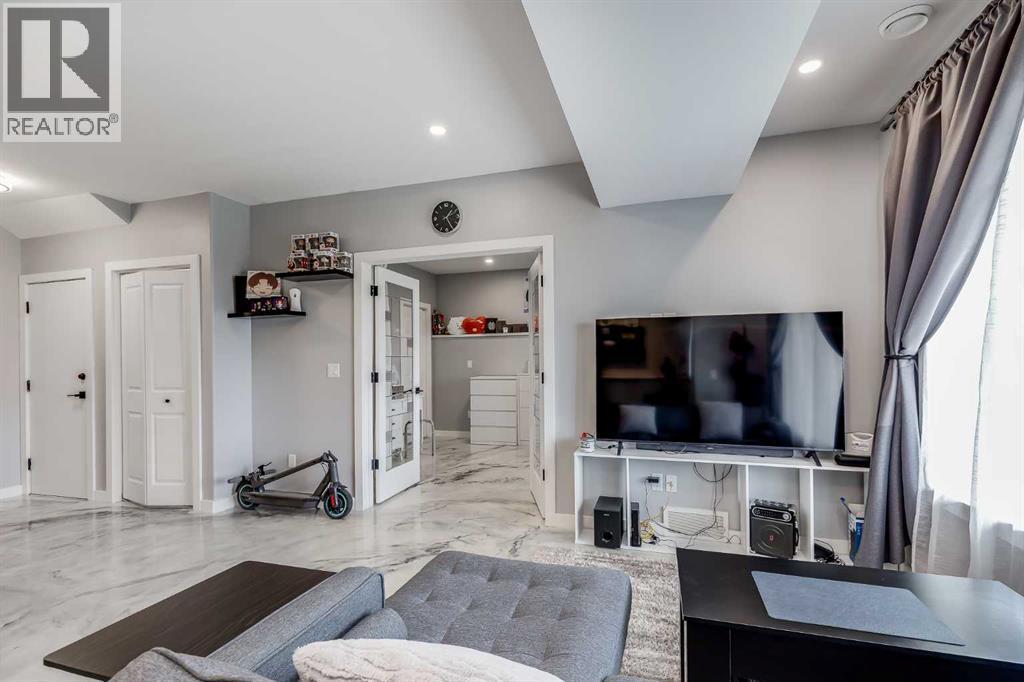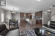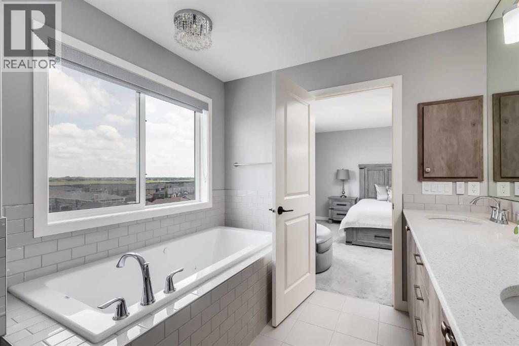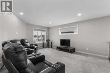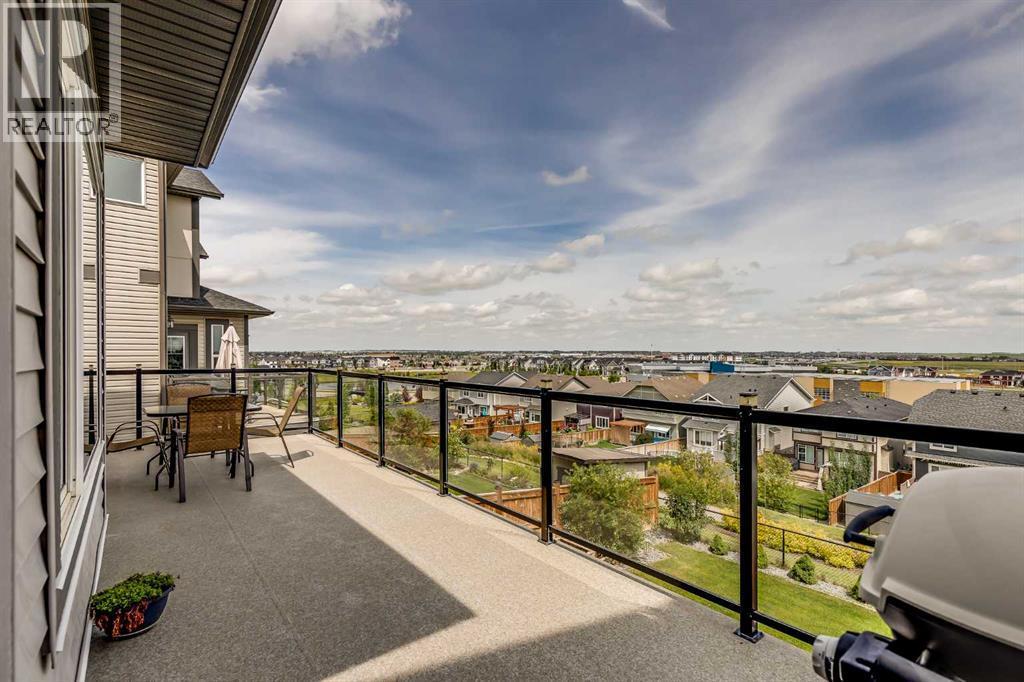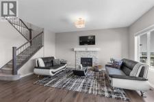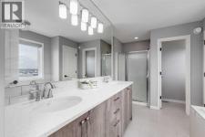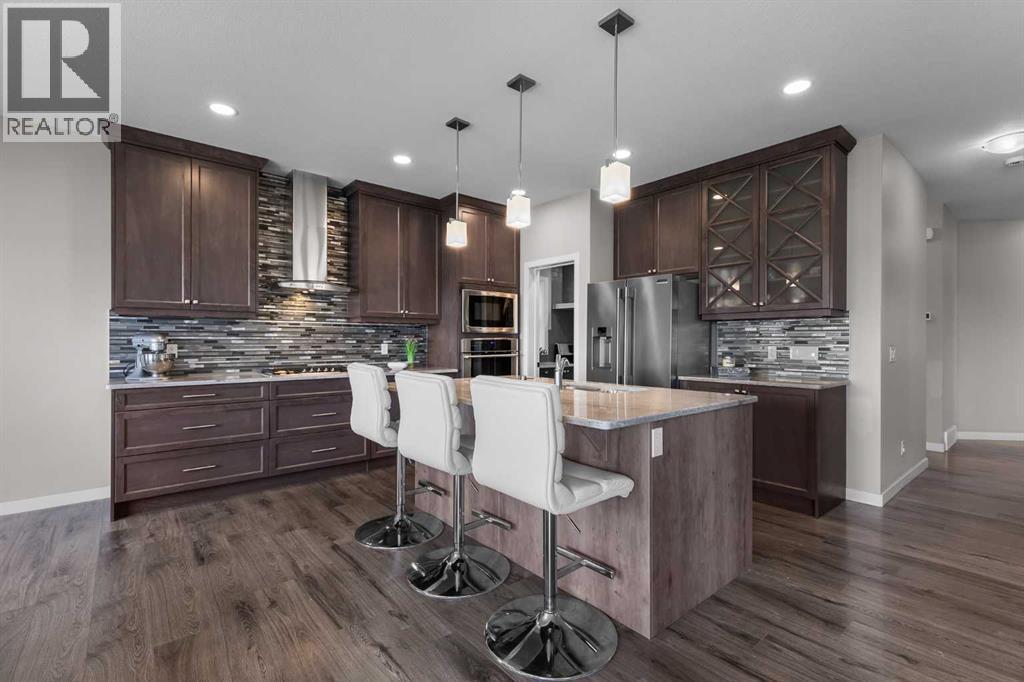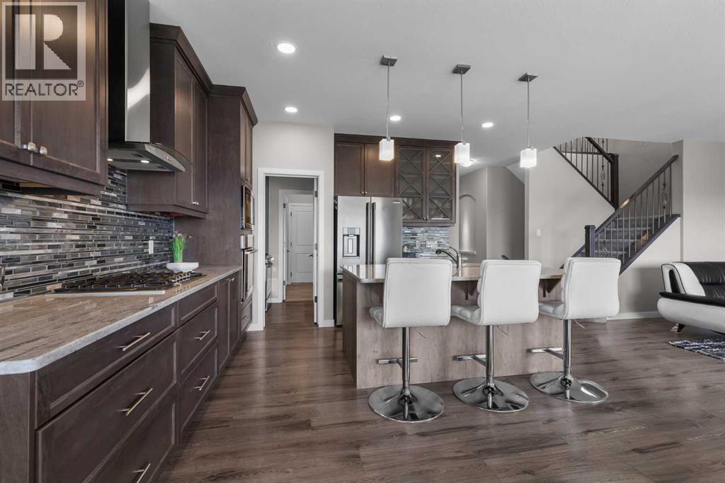 Beautifully appointed & ideally located, this 6-bedroom walkout home with a LEGAL suite, dream garage & premium upgrades delivers upscale comfort, functional design & long-term versatility. Backing onto a scenic pathway leading to Northcott Prairie School & a peaceful pond, this home blends family-friendly convenience with elevated style. Smart lights & switches are installed throughout, with cameras & door sensors on all entry points. Wide plank flooring, curved staircase & railings, bullnose corners, a soft neutral palette & expansive windows create a warm, welcoming atmosphere. The open layout encourages connection, from quiet evenings by the gas fireplace to lively gatherings in the oversized dining area. The modern kitchen inspires culinary creativity with full-height cabinetry, glass backsplash, gas cooktop, built-in wall oven, under-cabinet lighting rough-in & a statement island for casual meals. A walk-through butler’s pantry adds efficiency with a second gas stove, prep sink & extra storage. Two spotlight-lit alcoves add stylish display options. Step outside to the full-width upper deck with glass railings, gas & water lines & take in tranquil views. A private den provides a quiet space for work or study. Upstairs, a spacious bonus room invites family downtime, while four large bedrooms ensure room for all. The elegant primary retreat includes a walk-in closet & spa-inspired ensuite with dual sinks, soaker tub & glass shower. A secondary bedroom with private 3-pc ensuite is perfect for guests or teens, while a shared 4-pc bath & upper laundry add daily ease. The finished walkout level adds incredible flexibility with a bright, open-concept legal suite featuring two bedrooms, a full kitchen with gas rough-in, professional metallic epoxy floors, under-cabinet lighting rough-in, separate laundry, 3-pc bath & private entry—ideal for multi-gen living or long-term guests. Outside, the yard features a covered lower patio with rough-in for a hot tub, both gas & wat er lines, garden beds & direct access to the pathway network. The charming front porch boosts curb appeal & makes a perfect morning coffee spot. The garage is a standout with gas line for future heater, hexagon LED lighting, pro-grade floor tiles, overhead storage & handy man door. Just a 5-min walk to school & 18-min stroll to shops, with easy access to QEII, CrossIron Mills & Calgary—this is a rare chance to live beautifully in a prime Airdrie location. (id:6769)