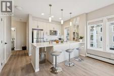 Welcome to this bright and stylish third-floor corner unit offering approximately 900 sq. ft. of open-concept living. Featuring soaring 9-foot ceilings and expansive floor-to-ceiling windows, the space is filled with natural light and offers partial mountain views, along with beautiful sunrise and sunset vistas. The upscale feel is evident from the moment you enter.The modern white kitchen is thoughtfully designed with sleek quartz countertops, stainless steel appliances, and ample cabinetry—perfect for entertaining or enjoying a quiet night in. The well-planned layout includes two spacious bedrooms located on opposite sides of the unit for added privacy, along with two full bathrooms. The inviting living area is complemented by durable mahogany vinyl flooring throughout.Additional features include in-suite laundry and the added benefit of extra windows exclusive to this corner unit. Ideally located just steps from shopping, transit, and restaurants, this condo is only a 5-minute walk to the lake and beach, 2 minutes to Sobeys, and 5 minutes to the bus stop.Offering modern style, comfort, and unbeatable convenience. (id:6769)