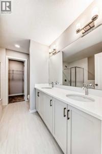 THIS IS ONE OF WALDEN’S BEST-PLACED STREETS. Half a block from ponds and pathways, tucked away from through traffic, and positioned where daily routines feel quieter by default, 182 Walgrove Manor SE sits in a pocket buyers hope to find—and rarely do.Inside, the Halladay plan opens with intention. A TWO-STOREY LIVING ROOM immediately changes the feel of the main floor, pulling daylight deep into the space and giving the home a sense of volume that’s felt, not announced. The full-height fireplace wall anchors the room without overpowering it, while the OPEN-TO-BELOW BONUS ROOM above keeps the connection between levels light and natural. At the front of the home, a FLEX ROOM with FRENCH DOORS creates true separation—ideal for focused work, homework, or a quiet reset before the day begins.The kitchen is designed around movement and storage, with a layout that feels intentional, efficient, and easy. A WALK-THROUGH PANTRY connects directly to the garage, so groceries land exactly where they should. Warm wood cabinetry, light quartz, and clean-lined finishes keep the palette calm and current, while the open layout flows easily into the dining area for everyday meals or casual hosting. From here, the UPGRADED THREE-PANEL PATIO DOOR opens to a 13' × 10' REAR DECK—already built, already usable, and roughed-in for a BBQ—so indoor life extends outward without complication.Upstairs, the layout stays practical and well balanced. The bonus room overlooks the living space below, both secondary bedrooms include WALK-IN CLOSETS, and the primary bedroom sits at the opposite end of the floor for added privacy. A FIVE-PIECE ENSUITE with a double vanity, SOAKER TUB, GLASS SHOWER, and a walk-in closet that completes the retreat with ease.The basement is set up for future flexibility, with 9' FOUNDATION WALLS, a SEPARATE SIDE ENTRY, and ROUGH-INS already in place for a bathroom, bar, and laundry. Mechanical upgrades include a 200-AMP ELECTRICAL SERVICE and an 80-GALLON HOT WATER T ANK—smart choices that support long-term use.The home is fully complete and available for IMMEDIATE POSSESSION. Book a showing today! Walden’s ponds and pathways are just around the corner—and ready whenever you are. (id:6769)