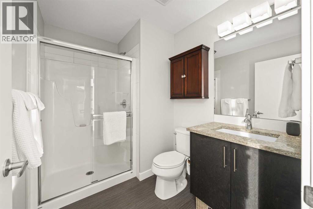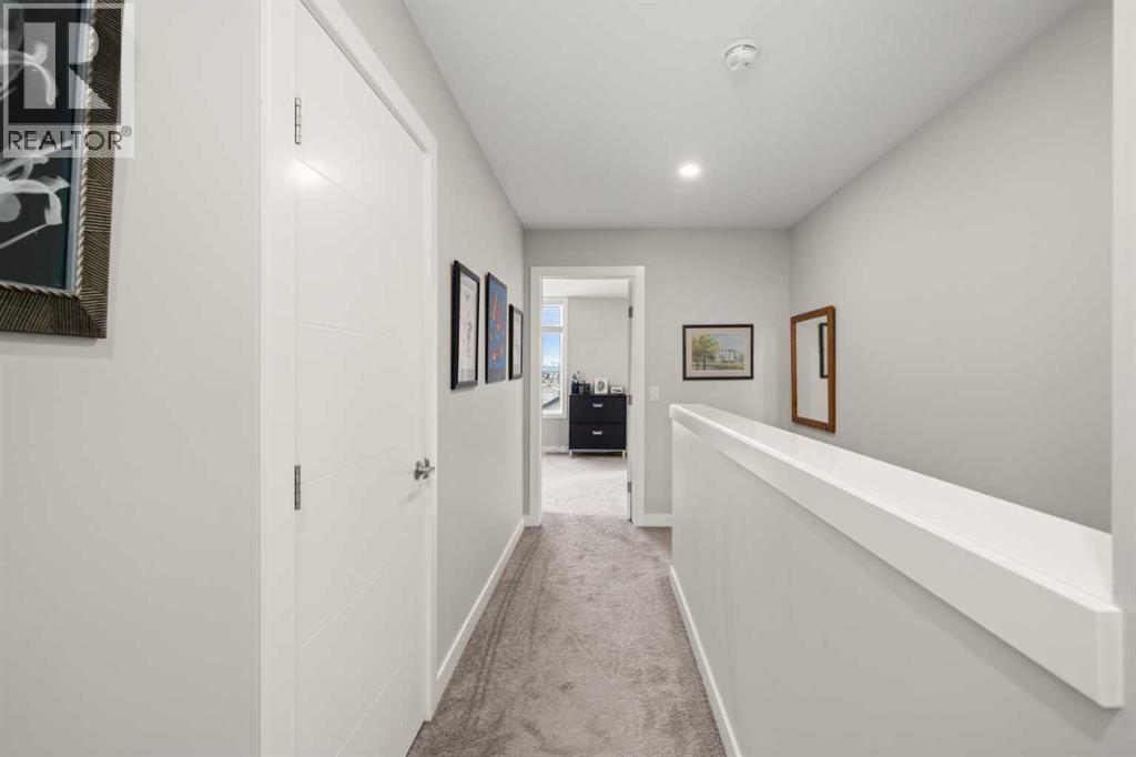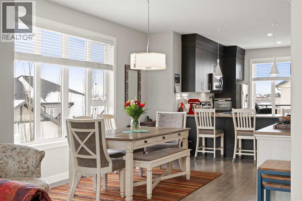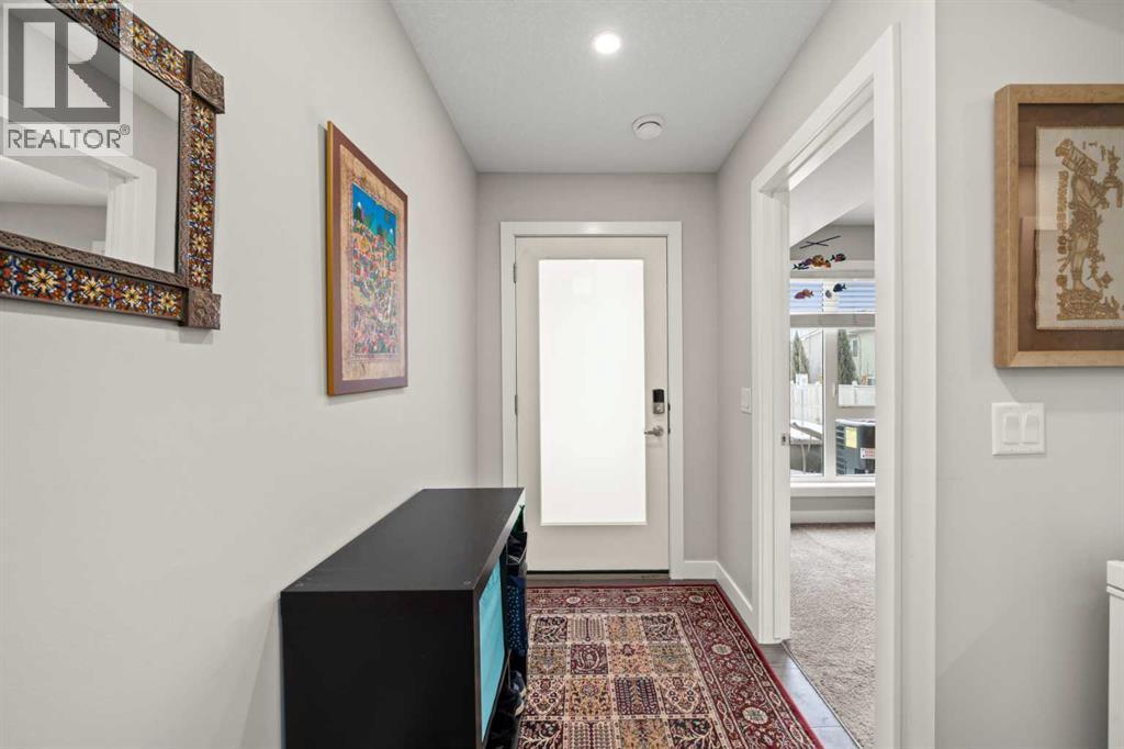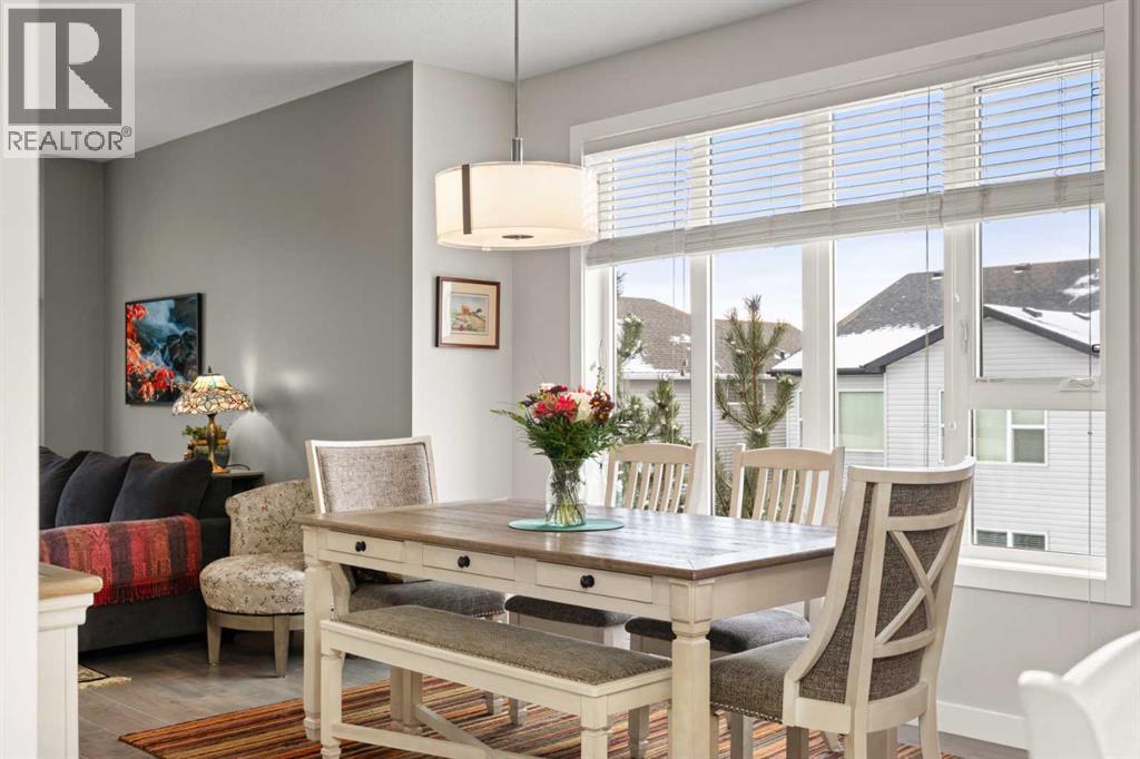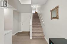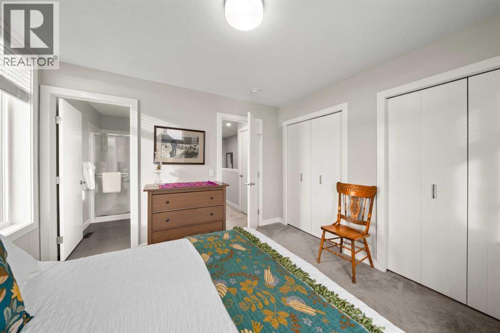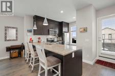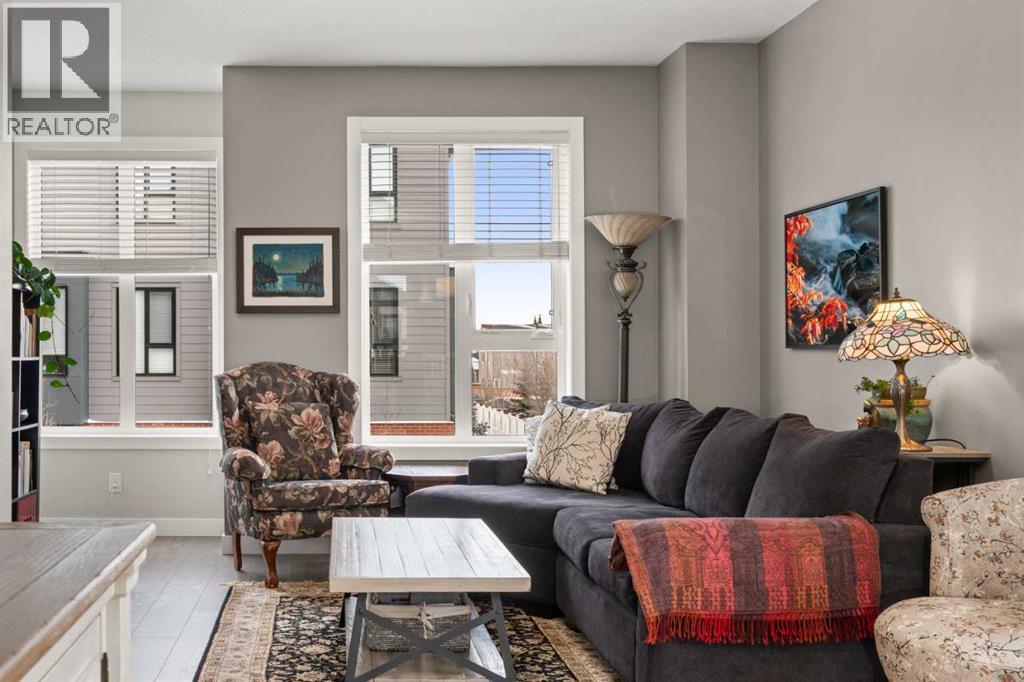 Welcome to this beautifully appointed, air-conditioned end-unit townhouse showcasing stunning west-facing mountain views. Lovingly maintained by its original owner, this home reflects true pride of ownership throughout.From the moment you arrive, you’ll appreciate the convenience of a private driveway, ease of parking for visitors, impeccably maintained common areas, and the welcoming front patio. The entry level features durable tile flooring, a versatile den ideal for a home office or flex space, a convenient half bath, and direct access to the oversized single attached garage with additional storage.The main living level offers an open-concept layout enhanced by luxury vinyl plank flooring. The contemporary kitchen is both stylish and functional, featuring quartz countertops, cabinets extended to the ceiling, generous counter space, a pantry, and stainless steel appliances. Step onto the west-facing balcony to enjoy breathtaking mountain views and unforgettable sunsets. This level is completed by a spacious dining area and a bright, inviting living room filled with natural light from the abundance of windows—perfect for entertaining or relaxing!Upstairs, two generously sized primary bedrooms each feature their own ensuite bathrooms and dual closets. The west-facing primary suite boasts spectacular mountain views and a four-piece ensuite, while the east-facing suite offers a three-piece ensuite with a large walk-in shower. Convenient upper-floor laundry completes this level.Ideally located close to a park, walking paths, a nearby school, and a variety of shopping and everyday amenities, this exceptional end unit seamlessly combines thoughtful design, modern finishes, and a highly desirable location—truly a place you’ll be proud to call home.View 3D/Multimedia/Virtual Tour. (id:6769)