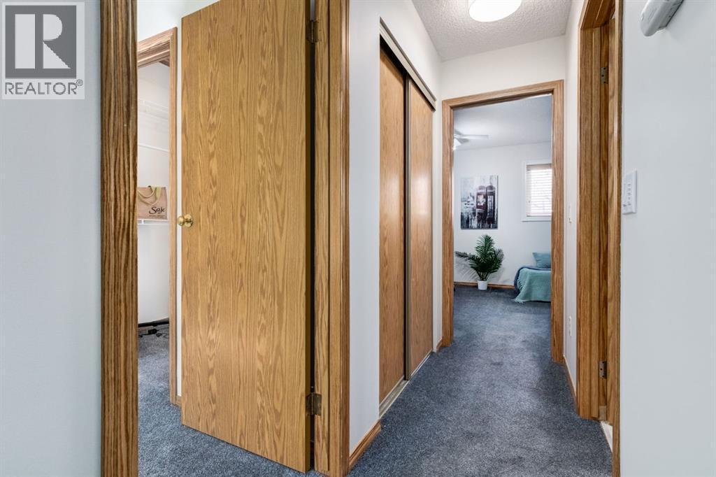 Beautifully maintained 2-bedroom townhouse with single attached garage in desirable Millrise. This home offers numerous updates including newer windows, including double sliding doors to a private backyard backing onto green space, and a newer furnace and hot water tank. Enjoy the benefits of a bare land condo, where you own the land beneath your home.The interior has been freshly painted in natural tones and features new light fixtures and laminate flooring on the main level. The upper floor offers two spacious bedrooms, including a primary suite with walk-in closet, and a second bedroom nearly equal in size. Functional floor plan with 1.5 baths and an undeveloped basement ready for future development. Located in a quiet cul--de-sac within a well -managed complex, this home is walking distance to schools, parks, amenities and LRT making it ideal for first- time buyers or investors . Millrise is served by schools perfect for growing families who value convenience and safe walks to schoolsExcellent value, quick possession. Call today for your private viewing . (id:6769)