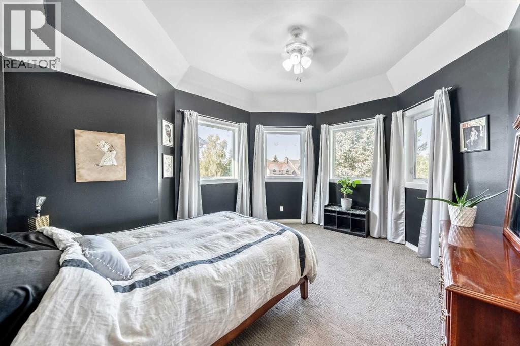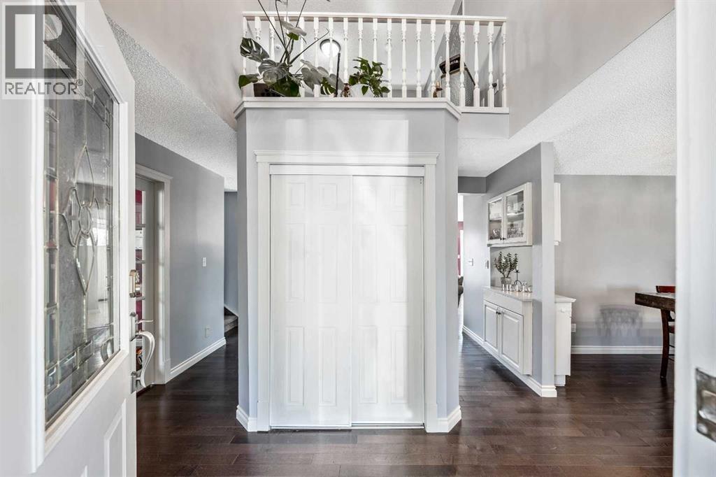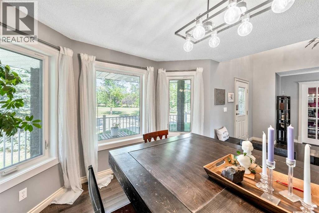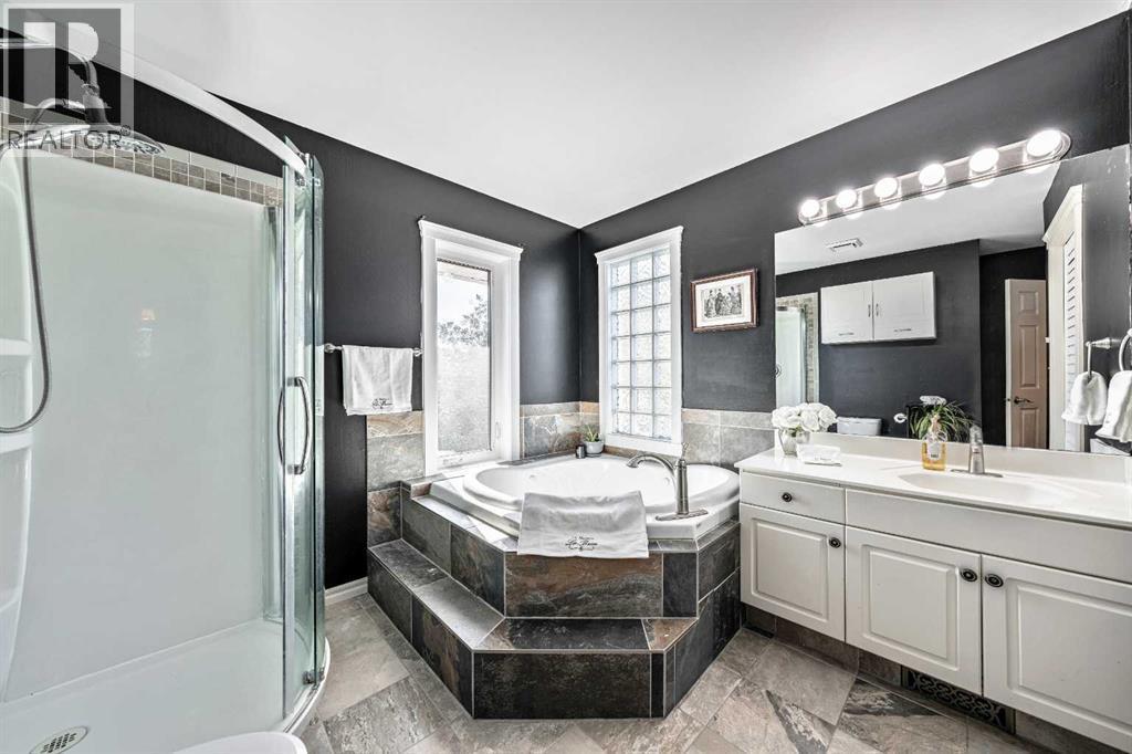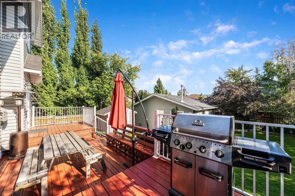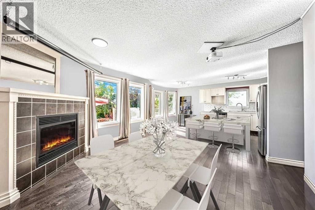 Don’t miss this storybook Westridge gem, tucked into one of Okotoks’ most sought-after cul-de-sacs and facing a picturesque park. This charming 2-storey offers over 2,930 sq. ft., 5 bedrooms, 3.5 baths, A/C, and a sunny south-facing backyard with a 3-tier deck. Bright foyer, formal dining with bay window park views, plus a flexible office/den. The open-concept rear features a cozy fireplace and a kitchen with bay windows, stainless steel appliances, ample cabinetry, and generous counter space. Upstairs: 3 bedrooms, bonus room, and a primary retreat with vaulted ceilings, turret bay windows, walk-in closet, and ensuite with heated floors, soaker tub, and separate shower. Fully finished basement includes 2 more bedrooms, rec/family spaces, renovated 3-piece bath, and lots of storage space. Outside: mature trees, gas hook-up, and a large south lot. Bonus: oversized heated double garage with 220V, its own furnace, and workshop space.**Noteworthy Upgrades**: Updated plumbing—NO Poly-B! 2025: All windows (incl. basement) replaced with triple-pane; New Stove & Microwave. 2024: New Hot Water Tank. 2023: New Washer/Dryer + Water Filtration. Furnace serviced annually. Minutes to top-rated schools, amenities, and the river pathway system. (id:6769)