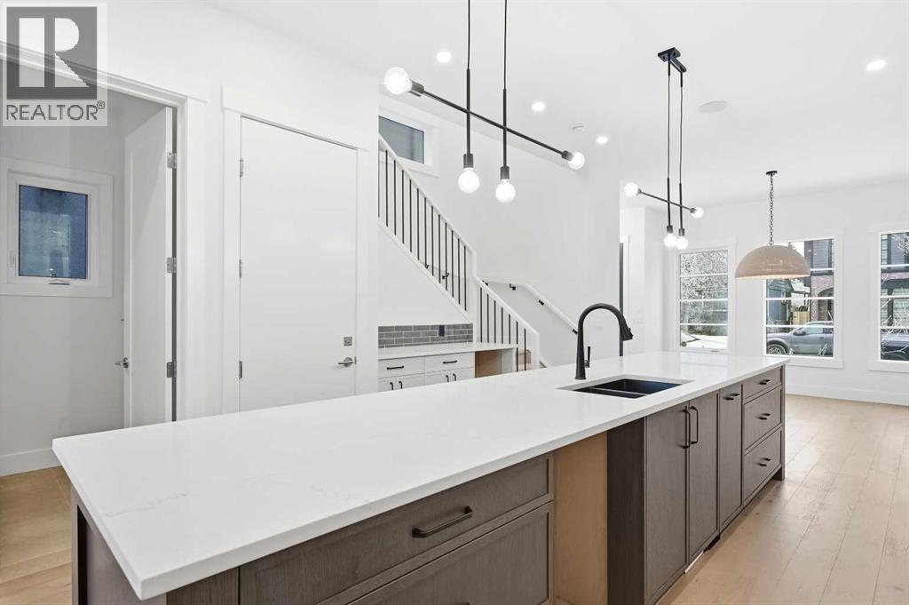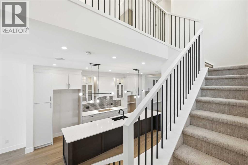 Welcome to 5005 21A Street. This modern 5-bedroom, 3.5-bath home opens with a bright dining area that leads directly into the main living space. The kitchen is built for both daily use and entertaining, featuring quartz countertops, ceiling-height cabinetry, a large island, and a dedicated coffee bar.In the living room, high ceilings, a gas fireplace, and a built-in desk create a functional yet comfortable atmosphere. Double doors connect to the back deck, while a mudroom and powder room add convenience to the main floor.The upper level features a primary suite with its own coffee station, two walk-in closets, and a 5-piece ensuite with a soaking tub and glass shower. Two additional bedrooms, a full bath, and the laundry room are also on this floor. With a classic brick exterior, double garage, and landscaped yard, the home is just minutes from the shops and dining in Marda Loop. Book your showing today! (id:6769)