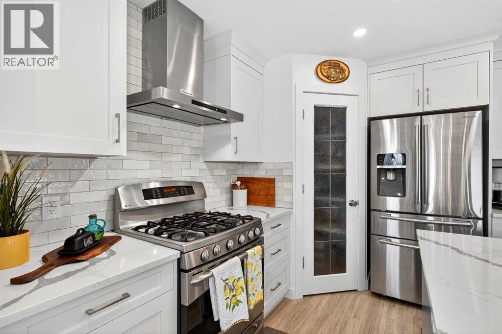 WOODSIDE Renovated BUNGALOW With TRIPLE CAR GARAGE This home seamlessly combines modern comfort with timeless charm, offering a perfect retreat for families and entertainers alike - offering over 2563 sq ft of Developed Space. Step inside to discover a brand-new ZEN LIVING KITCHEN featuring sleek quartz countertops, stylish cabinetry, and contemporary finishes. Kitchen also features Gas Stove, Chimney Hood Fan and New Light Fixtures. The Whole House shines with NEW paint, NEW flooring, NEW Light Fixtures and TRIPLE-PANE windows (installed in 75% of the home), flooding the space with natural light while ensuring energy efficiency.Enjoy cozy evenings by the WOOD BURNING FIREPLACE, or unwind on the covered rear deck overlooking the beautifully landscaped backyard. The yard is a true gardener’s paradise, complete with raised garden beds, a SHE SHED, strawberry patch, and apple trees.The FULLY FINISHED basement with 9-foot ceilings adds incredible living space, offering two additional bedrooms, a large recreation room, and a modern 3-piece bath—perfect for guests or family living.Car enthusiasts and hobbyists will love the insulated TRIPLE-CAR garage, complete with a heater and sub panel for tools or workshop equipment, and Hot and Cold Water Taps. Additional upgrades include attic insulation upgraded to R60 - both House and Garage, Two new exterior doors for added comfort and efficiency, AIR CONDITIONING to cool off during the Heat of the Summer and Furnace and Duct Cleaning alray done for you as well. With every detail thoughtfully updated, this home is truly move-in ready and situated in one of Airdrie’s most sought-after neighborhoods.Don’t miss your chance to own this exceptional property—schedule your private showing today! (id:6769)