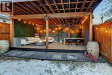 A renewed opportunity after a previous buyer was unable to secure financing! MC zoning introduces versatility and long-term value in this beautifully updated, move-in-ready character home set in the heart of Marda Loop. Investors appreciate the redevelopment potential on an increasingly sought-after corridor, business owners gain a rare chance to live and operate in a walkable commercial hub and families enjoy the charm, comfort and function of a single-family home with a remarkable outdoor living space. Character from the original 1914 build adds warmth through wide profile windows, preserved wood elements, exposed brick and thoughtful architectural details that pair seamlessly with extensive modern upgrades. A welcoming entry sets the tone with shiplap and wide luxury vinyl plank flooring that flows into a relaxing living room framed by an exposed wood beam and elegant wainscotting. The dining area sits beneath striking designer lighting and blends easily into a renovated kitchen finished with quartz counters, full-height tile, stainless steel appliances, fridge with a French door, a gas stove and updated white shaker cabinetry for everyday ease. An adjacent family room enhances daily comfort with an electric fireplace and tranquil views of the backyard from oversized windows, creating a natural spot for unwinding. This level includes a main floor bedroom and a 4-piece bathroom for flexible main-floor living. Two additional bedrooms rest on the upper level along with a stylish, recently renovated 3-piece bathroom with modern black hardware. The basement provides valuable bonus space for a gym, play area and storage with easy access to mechanical systems and exterior storage beneath the rear addition. Recent improvements introduce durability and peace of mind, including a high efficiency furnace (2022), hail resistant asphalt shingles (2022), acrylic stucco (2022), vinyl plank flooring, new paint, updated PEX piping and a fully renovated kitchen (2023). Outdoor liv ing is unmatched with an extra deep fenced yard designed for hosting, complete with ornamental grasses, a deck for barbecuing and an incredible covered entertainment pavilion (2023) with lighting and lounge space that extends the seasons. Privacy and security come through with the newly built fence fully encompassing the yard and thoughtful landscaping that frames the yard beautifully. This location places you within minutes of the shops, cafes and amenities of Marda Loop, close to schools, parks, transit and quick routes into downtown, Altadore, South Calgary and the river pathway system. A rare combination of historic character, modern comfort and multi-use flexibility (great holding property) creates meaningful opportunities for a wide range of buyers! (id:6769)