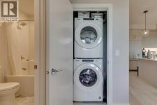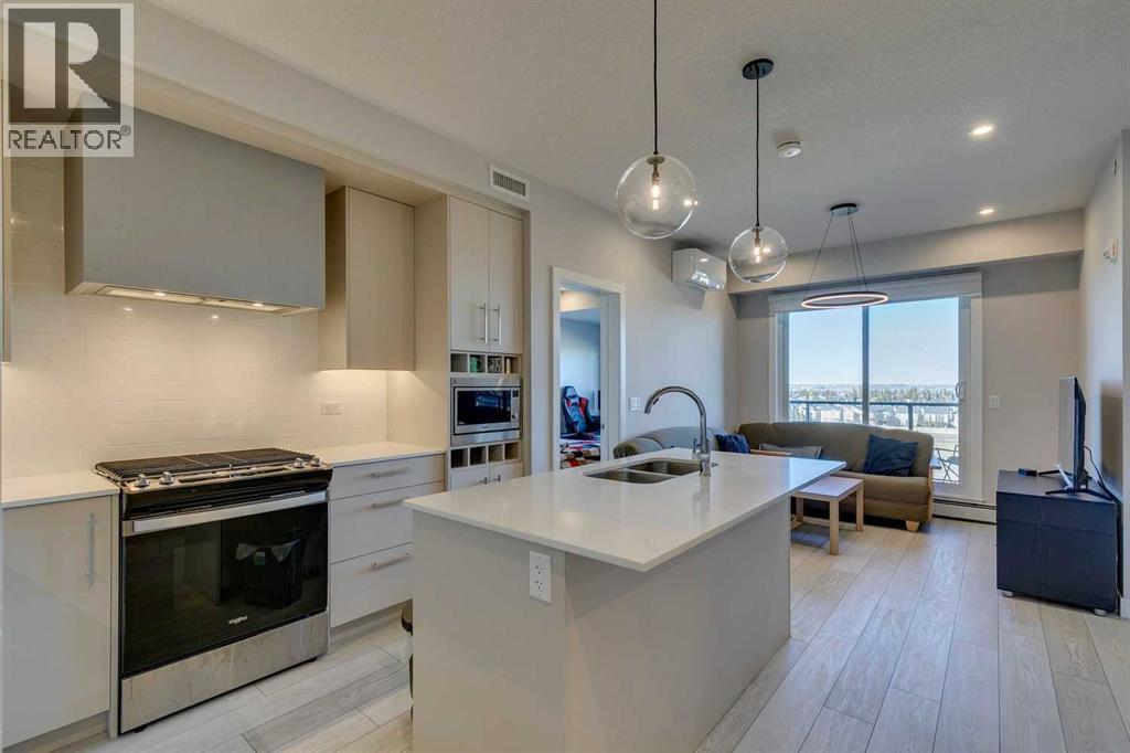 Welcome to elevated urban living at Mondrian, an architecturally striking residence nestled in the heart of Calgary’s highly coveted, master-planned West District. This top-floor 2-bedroom + den, 2-bathroom unit offers the perfect blend of sophisticated style and smart functionality—ideal for professionals, couples, or anyone who appreciates contemporary comfort in a prime location. Step inside to discover a bright, open-concept layout designed for both everyday living and stylish entertaining. The modern kitchen is a chef’s dream, featuring premium appliances including a gas cooktop, sleek cabinetry, and elegant finishes. The kitchen flows effortlessly into the spacious living and dining area, which extends out to your private balcony—perfect for morning coffee or unwinding with sunset views. Both bedrooms are generously sized, with the primary suite offering a peaceful retreat and its own spa-inspired ensuite. The versatile den provides the flexibility to create a home office, study space, or creative corner tailored to your needs. Additional highlights include in-suite laundry, central A/C, and an abundance of natural light throughout. This unit also includes a titled underground parking stall and a separate storage locker, ensuring convenience and peace of mind year-round. As a resident of Mondrian, you'll enjoy access to an exclusive rooftop terrace—a stunning communal space with panoramic city and mountain views, ideal for hosting or relaxing above it all. Location is everything, and Mondrian places you steps from boutique shopping, fine dining, and lush parks—all in one of Calgary’s most vibrant and walkable neighborhoods. Move-in ready and designed for modern life, this exceptional home is your opportunity to live in style at the center of it all. (id:6769)