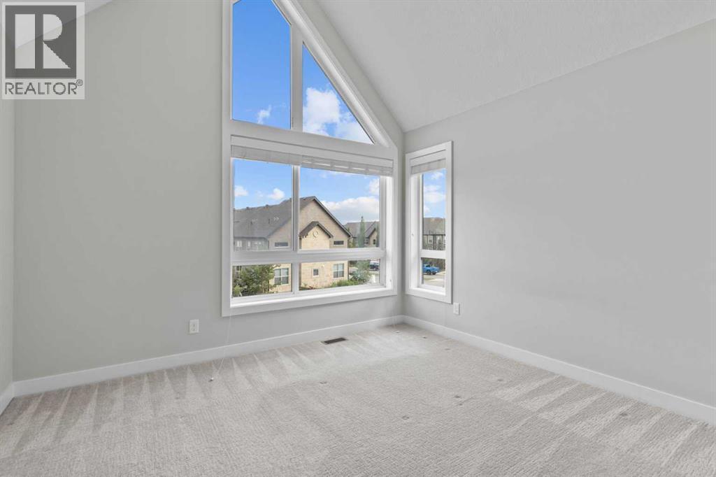 Welcome to this stylish 3-story townhome with attached double car garage in the community of Sage Hill. This particular condo is an end unit with full height brick exterior wall in the front and cement board siding. It has a modern design inside with 3 storeys that boasts many upgrades, including all carpet areas , laminate hardwood floorings, bath and laundry tiles and air-conditioning. The entrance is on street level that features a good-sized office with a large window and easy access to the double garage in the back. The living area on the second level has an open concept design with a spacious living room, a functional kitchen and a roomy dining room with large windows on two sides. The southeast facing windows in the living room allow natural sunlight to brighten and warm up the home. Kitchen is equipped with stainless steel appliances including the upgrade of Elica 30” under the cabinet range hood and a 2022 french door fridge with water dispenser and bottom freezer. Countertops in the kitchen and baths were upgraded to 1 ¼” granite. By the dining room is an exit to a covered balcony with a gas line for barbeque. A 2-piece half bath is on top of the stairs from the ground level. All three bedrooms are on the top floor. The master bedroom is completed with vaulted ceiling, raked windows that extend right to the ceiling, a walk-in closet and a 4-piece ensuite which has been upgraded to the 5’ stand-up shower with framed 5 mm glass slider door. The other two bedrooms are served by another 4-piece main bath on this level. The double attached garage, both heated and insulated, is backside facing. This complex is within walking distance to Symons Valley Natural Reserve. Minutes to shopping centres and major traffic arteries and highways. Don't miss the opportunity to make it your own! Book your showings today! (id:6769)