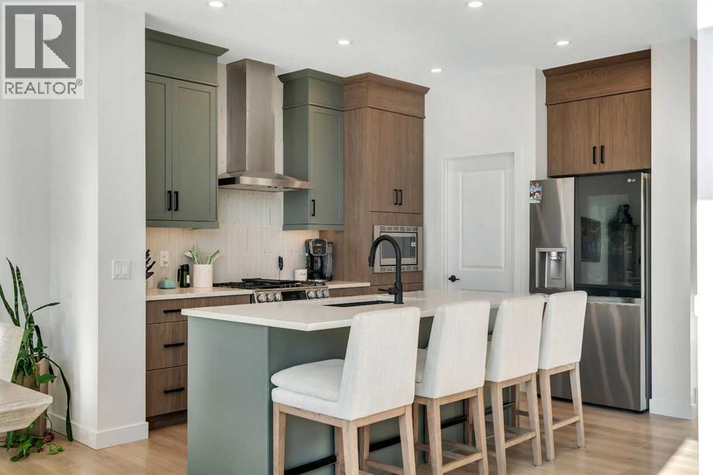 A family home, a true bonus room, and a fully legal suite, all in one address.20 Edith Crescent NW in Glacier Ridge offers 4 bedrooms, 3.5 bathrooms, and a layout that works for real life. The main floor is anchored by an 18 foot open to below living room with oversized windows and a statement fireplace. The kitchen is a clear step above the typical spec package with two tone cabinetry to the ceiling, full height tile backsplash, chimney hood fan, gas range, built in microwave, and a large quartz island with seating for four.Upstairs, the plan makes sense for families and multi generational living. You get a proper bonus room, a primary bedroom with ensuite and walk in closet, two additional bedrooms, and a full 4 piece bathroom. Separate spaces upstairs and down means everyone can spread out without feeling disconnected.The fully legal basement suite adds flexibility. Use it as a mortgage helper, a private space for extended family, or a separate setup for guests. It has its own furnace and a private side entrance, plus an extended driveway and a poured concrete walkway that leads directly to the suite entrance.Outside, both the front and back yards are already finished, which is rare at this price point. Add 10 solar panels and 200 amp electrical service and you have a home that looks great, lives well, and gives you options long term. (id:6769)
