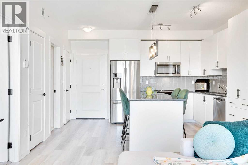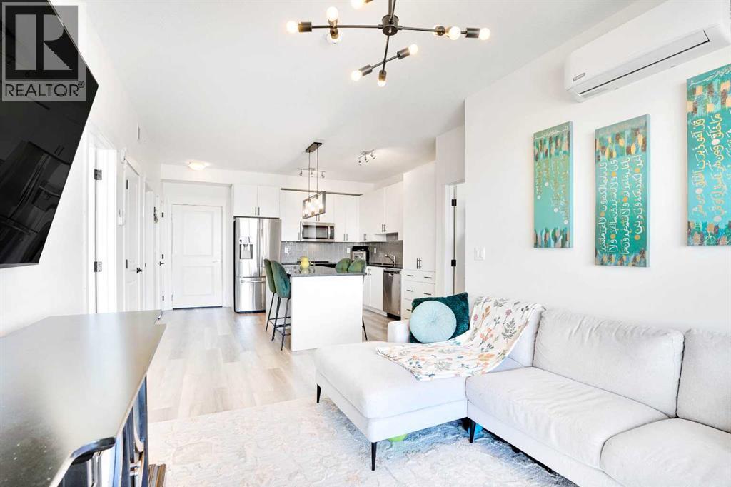 3D VIRTUAL TOUR| TOP FLOOR UNIT WITH EXCELLENT VIEW| WALL MOUNT AIRCONDITIONER| UNDERGROUND TITLED PARKING| Welcome to this stylish developer spec condo in Sage Hill Park II, featuring the highly desirable Excellent plan by Brad Remington Homes. This thoughtfully designed 2-bedroom, 2-bathroom home offers the perfect blend of modern finishes and functional living. The bright open-concept layout is enhanced by 9-foot ceilings, durable vinyl comfort plank flooring, and air conditioning for year-round comfort. The chef-inspired kitchen boasts granite countertops, soft-close cabinetry, and a full stainless steel appliance package, including fridge, stove, built-in dishwasher, over-the-range microwave, and front-load washer and dryer. The primary bedroom provides a private retreat with a spacious ensuite, while both bedrooms feature plush carpeting for added comfort. Contemporary bathrooms are finished with stylish tile flooring. Additional highlights include titled underground parking, a dedicated storage unit, window coverings, and convenient in-suite laundry. Ideally located backing onto a scenic environmental green space and regional bike path, this condo is perfect for outdoor enthusiasts. Enjoy being steps from Sage Hill Crossing shopping and dining, minutes to Beacon Hill Centre with Costco, and quick access to Stoney Trail for effortless commuting. Offering modern comfort, style, and an unbeatable location, this home truly has it all. (id:6769)
