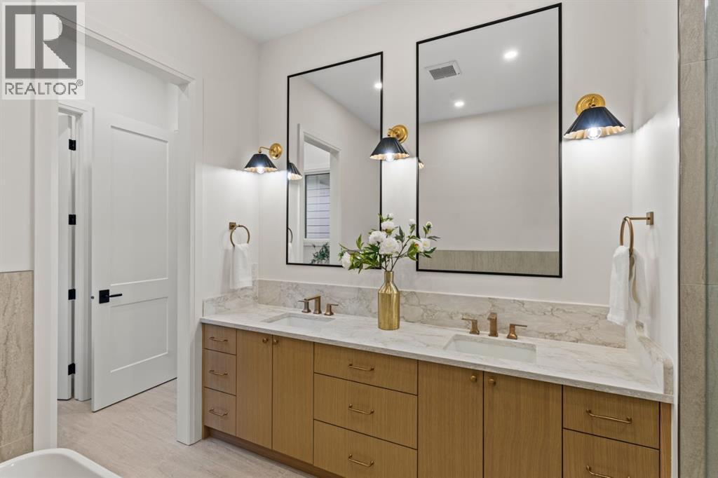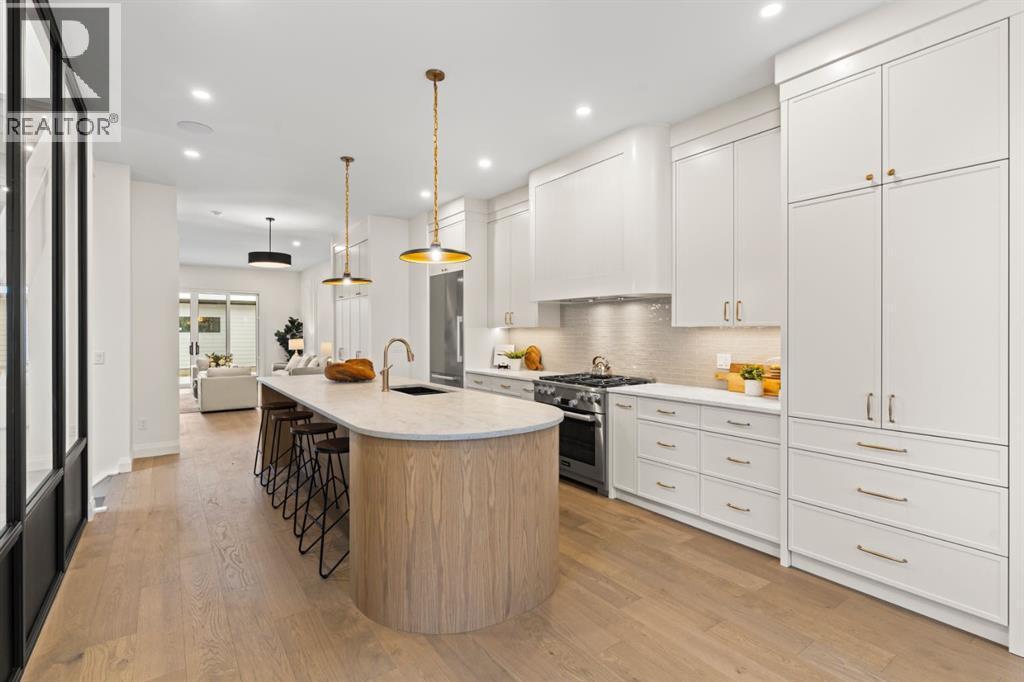 Open House Sat Jan 10, 2-4. Welcome to The Vega — a beautifully crafted home by Cedar Rock Homes, set on one of Briar Hill’s most desirable streets. This four-bedroom, 3.5-bath residence offers over 3,200 sq ft of developed living space on an oversized 130-foot-deep lot. Architectural elegance meets thoughtful functionality and elevated finishes to create a space that feels both sophisticated and comfortable.Step inside to soaring 10-foot ceilings, wide-plank white oak floors, and natural light that fills every corner. The open-concept main floor flows seamlessly from the chef’s kitchen — complete with custom millwork and a full Miele appliance package — to the inviting living area anchored by a sleek gas fireplace and full dining space perfect for family gatherings and entertaining.With 10-foot ceilings on the upper floor and vaulted bedrooms, the primary suite feels like a private retreat, featuring heated floors, a curbless steam shower, freestanding tub, and dual walk-in closets. Two additional bedrooms — each with walk-in closets — share a spacious five-piece bath, while a pocket office provides a quiet spot to work or study.The lower level offers room to live and play, with a large family area, wet bar, home gym, fourth bedroom, full bathroom, and roughed in infloor heating — ideal for guests or extended family.Outside, enjoy quiet evenings in your private yard or coffee on the front courtyard patio. With a double detached fully insulated, drywalled and painted garage, smart-home wiring, and high-efficiency mechanicals, every detail has been designed for lasting comfort and performance.Nestled in Briar Hill, one of Calgary’s premier inner-city communities, you’re just minutes from Kensington, Foothills Hospital, SAIT, the University of Calgary, and some of the city’s best parks and schools.The Vega — modern living, perfectly grounded in a classic Calgary neighbourhood. Book your private showing today! (id:6769)