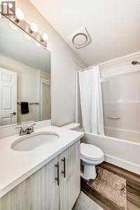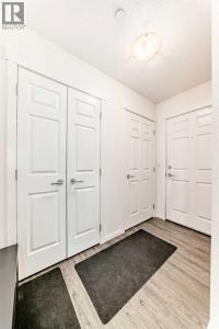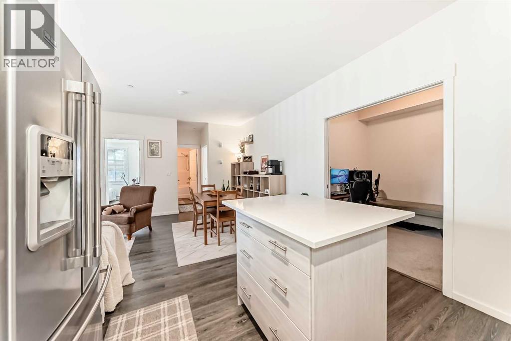 Welcome to this bright and spacious corner unit ideally located in the heart of Legacy, directly across from a park with unobstructed green-space views. Situated on a main road for excellent accessibility, this 2-bedroom + den, 2-bath condo is steps from walking paths, a community pond, transit, and Legacy’s vibrant shopping plaza.As an end unit, the home is flooded with natural light and offers a highly functional layout with 893 sq ft of living space—one of the larger units in the building. The welcoming foyer opens to durable luxury vinyl plank flooring throughout, with carpeted bedrooms for added comfort. A large den/home office and in-suite laundry provide ideal flexibility for remote work or extra storage.The modern kitchen features quartz countertops, a subway-tile backsplash, textured thermafoil cabinetry, and a movable quartz island, perfect for entertaining and everyday living. Both full bathrooms are finished with quartz counters, continuing the clean, contemporary design.Additional highlights include rough-ins for air conditioning, a BBQ gas line, and the rare advantage of two titled parking stalls—one underground and one surface stall.An excellent opportunity for first-time buyers, downsizers, or investors looking for space, light, and convenience in a growing community. Book your private showing today! (id:6769)