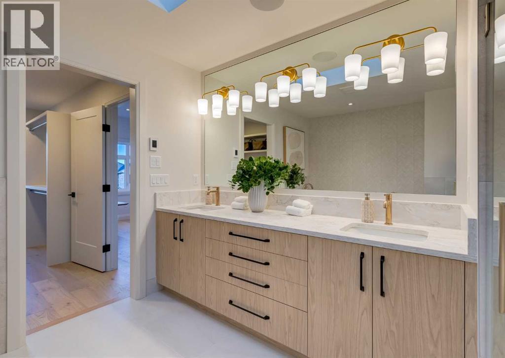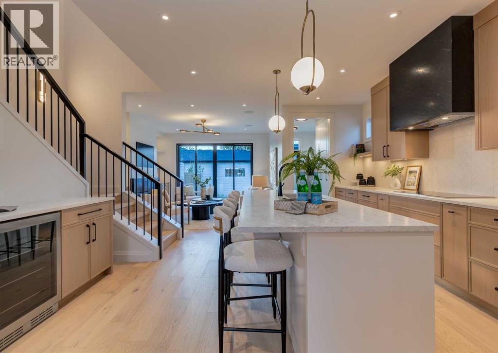 Welcome to this brand-new, exquisitely designed custom home with a West backyard built by Treehouse Developments — an award-winning builder celebrated for quality craftsmanship and thoughtful design. Located in the heart of Killarney, this property stands apart from the typical infill with its elevated finishes, concrete party wall, full New Home Warranty and a level of luxury rarely found, offering both peace of mind and timeless appeal. It’s packed with upgrades throughout and offers a truly refined living experience. Step inside to a welcoming foyer and dining room that flow seamlessly into an open-concept kitchen and living area, ideal for both everyday living and entertaining. The kitchen is equipped with high-end Fisher & Paykel appliances, stone countertops throughout, a large island, walk-in pantry, and stunning white oak rift-cut cabinetry. Extensive custom built-ins are thoughtfully integrated into the foyer, mudroom, and living room, adding function and elegance throughout the main floor. The living room features a marble-clad fireplace complete with Frame TV and sliding patio doors leading to a spacious maintenance-free composite deck. A functional mudroom off the rear entry leads directly to the garage, making daily routines effortless. Upstairs, a dramatic skylight floods the stairwell with natural light, leading to three bedrooms. The primary bedroom is impressively spacious, creating a true retreat with a spa ensuite that includes a standalone tub, steam shower with handheld, and heated floors. The main bath offers double sinks and a dedicated beauty bar, while upstairs laundry provides added convenience. Custom built-in closets are found throughout. The fully developed basement includes a large rec room with dry bar and bar fridge, a bedroom suite with walk-in closet and ensuite, and hydronic in-floor heating paired with an on-demand boiler for year-round comfort. A central AC/heat pump system adds modern efficiency. Outside, enjoy the fully landsca ped private sunny yard and an oversized 21' x 21' garage, insulated and drywalled to fit a truck. The exterior blends stone, cedar accents, and Hardie siding for striking curb appeal. This home is move-in ready and exemplifies the craftsmanship, quality, and design that make Treehouse Developments a standout builder in Calgary. It’s rare for a Treehouse-built home to hit the market, making this a special opportunity to own a truly exceptional property. (id:6769)