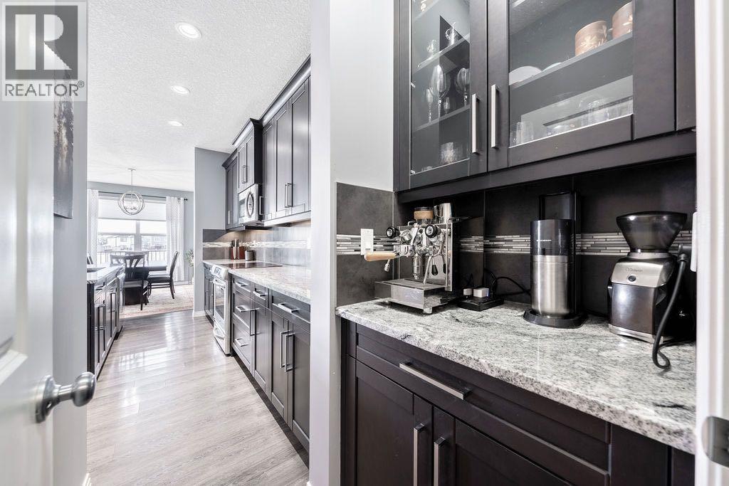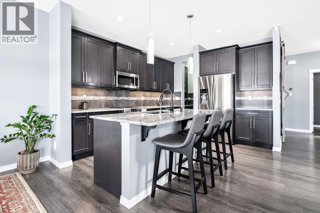 On a quiet culdesac in a sought after community, with breathtaking mountain views, is where your next chapter begins. Welcome to 6 Ranchers Bay.From the moment you step inside this beautifully maintained 5 bedroom home , the spacious foyer sets the tone, airy, stylish, comfortable and leading seamlessly into the open concept kitchen, living room, and dining nook. An ideal layout for everyday living and entertaining. The kitchen is both functional and elegant. Natural wood cabinetry, stainless steel appliances, granite countertops, and a charming butler’s pantry, along with a large food and storage pantry. You’ll love the mudroom storage and with the sliding barn door it can all be contained and out of sight. The living room is anchored by a striking stone surround gas fireplace, while the dining nook opens onto a large two tiered deck, effortlessly extending your living space outdoors.The pie shaped, west facing backyard is a true retreat, thoughtfully landscaped with low maintenance greenery, mature trees, full irrigation including drip lines, and unforgettable evening sunsets.Upstairs, you’ll find four generously sized bedrooms each with their own walk in closet, a four piece main bathroom, laundry room, and a bonus room that feels beyond comfortable. The primary suite is a private sanctuary, complete with stunning mountain views, five piece ensuite, and a walk-in closet.The fully finished basement is designed for relaxation and entertaining, featuring an impressive dry bar, theatre area, a four piece bathroom, and a fifth bedroom ideal for guests or a home office. The mechanical room is high efficient, along with reverse osmosis system, water softener and air conditioning.This home truly reflects pride of ownership, has been meticulously cared for and is an example of fine living in Okotoks. (id:6769)