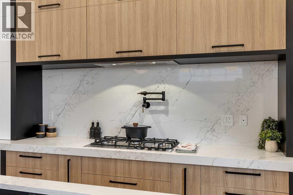 Welcome to HARMONY HAVEN — A stunning modern farmhouse that embodies the essence of contemporary living while embracing the warmth of rustic charm. Designed by PHASE ONE DESIGN and expertly built by DOMINIUM RESIDENTIAL, this home is perfectly situated in the desirable community of Currie, just 7 minutes from Downtown Calgary. With 3,256 square feet above grade and over 4,300 square feet of developed living area, HARMONY HAVEN offers ample space for both relaxation and entertaining. As you approach, the sleek, modern façade draws you in, promising the elegance that awaits within.The heart of this home is the exquisite kitchen, featuring a striking waterfall island, a through sink, and top-of-the-line Fisher & Paykel built-in panel-covered fridge and freezer. Cooking enthusiasts will appreciate the natural gas stove with pot filler, convection oven, and speed oven/microwave, all complemented by stylish three-tone custom cabinetry illuminated by under-cabinet lighting.The spacious living room is designed for comfort, showcasing built-in shelving, a cozy fireplace, and a stunning lighting fixture that adds a touch of sophistication. This inviting space offers beautiful views of the picturesque streetscape, creating a serene atmosphere.Safety is prioritized with stairway lighting, guiding you throughout the home. The double car garage is fully finished with paint and epoxy flooring, featuring a charging point for your electric vehicle—perfect for the eco-conscious homeowner.HARMONY HAVEN is equipped with advanced technology, including rough ins for voice commands, wiring for cameras, four two-speaker zones, indoor ceiling speakers with woofers, outdoor speakers for the deck, and myQ garage door openers for remote access. The fully landscaped yard is enclosed with premium vinyl fencing, providing both privacy and style.Retreat to the elegant ensuite, where you'll find heated floors, a spacious double vanity with custom mirrors, and a luxurious freestanding t ub. The second floor includes the luxurious primary bedroom and two large secondary bedrooms and bathroom plus a laundry room, storage close all perfect for family or guests.The loft floor consists of a bonus room, a large home office and an additional bedroom/flex room with a full bathroomThe breathtaking lower level is an entertainer's dream, featuring custom built-ins, a grand wet bar, and generous natural light. This versatile space also includes a large flex room and an additional bedroom.Located in one of Calgary’s premier inner-city communities, HARMONY HAVEN offers easy access to parks, dog parks, walking and biking trails, and over 12 schools catering to all age groups. This exceptional home seamlessly blends elegant design with modern conveniences, making it a must-see for any discerning buyer. Don’t miss your opportunity to claim this luxurious residence as your own! (id:6769)