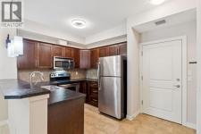 Welcome to this thoughtfully updated two-bedroom home in the sought-after Alora at Sunset Ridge—where comfort, convenience, and walkability come together. Perfectly suited for first-time buyers, downsizers, or investors, this move-in-ready residence offers an exceptional opportunity in one of Cochrane’s most desirable communities.The interior has been freshly painted and features newer flooring throughout, creating a clean and modern feel. The bright, open-concept layout is both functional and welcoming, complete with a built-in office nook ideal for working from home or studying. The kitchen flows effortlessly into the living area, making everyday living and entertaining easy. Step outside to the covered patio with a gas BBQ hookup—perfect for enjoying the outdoors in every season.Practicality hasn’t been overlooked, with generous in-suite storage, a secure storage locker in the titled underground heated parkade, plus the added convenience of an additional titled outdoor parking stall. Residents also enjoy access to excellent amenities including a fitness centre located in building 1, guest suite, and ample visitor parking.The location truly stands out. Walk to nearby schools, the Sunset Ridge business plaza, parks, pathways, and the scenic Cochrane Ranch area. With shops, dining, green spaces, and commuter routes all close at hand, this home delivers an unbeatable lifestyle balance.Tastefully maintained and ideally located, this Sunset Ridge home is ready for its next owner. Book your showing today and experience the convenience for yourself! (id:6769)