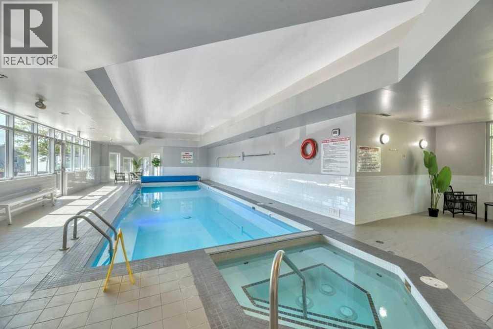 Don't miss your opportunity to own this excellent TOP FLOOR condo with UPDATED flooring, paint, trim, and all appliances! Edgecliff Estates offers exceptional amenities including a LARGE POOL & HOT TUB, steam room, fitness centre, and social room! You'll love the spacious living room with direct access to the top floor balcony, and made cozy by the corner fireplace! The primary bedroom has an ample walk-through closet and private en-suite. A 2nd full bath serves the 2nd bedroom and guests. Convenient storage and laundry (with new washer & dryer!) in the unit. This condo is a stone's throw to Nosehill Park, and the prestigious Edgemont community features extensive walking paths around the area including the Edgemont Ravine and Wetland, as well as public outdoor rinks, tennis courts, parks, playgrounds, and commercial amenities. (id:6769)