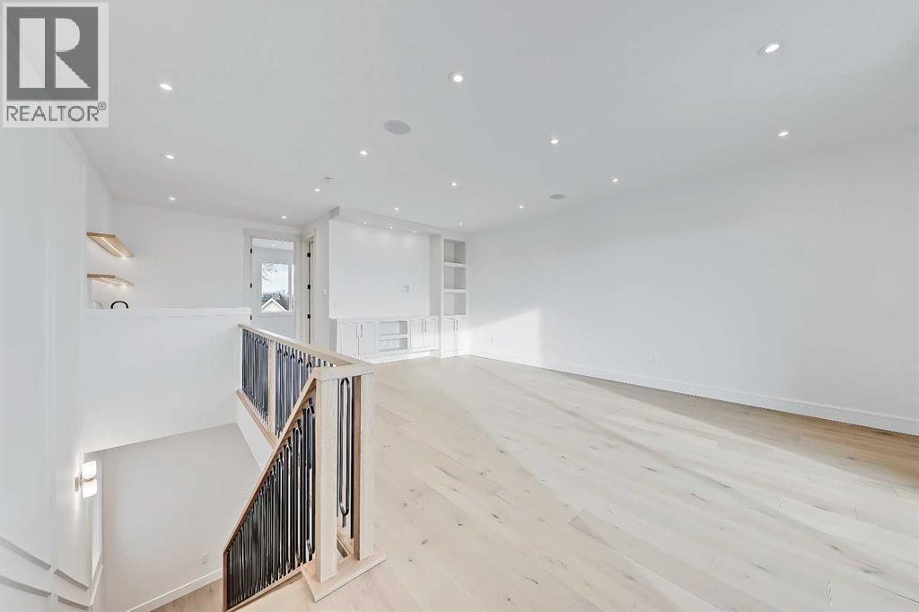 Every inch of this new luxury infill feels like a curated experience in refined design. Thoughtfully styled from the inside out, the home pairs timeless architectural details with contemporary softness—arched windows, warm wood tones, creamy stone finishes, and that quiet kind of luxury you feel the moment you step through the front door.Inside, you're greeted by a central foyer that opens into a bright, airy space with soaring ceilings and oversized windows that let in light from every angle. The dining area connects naturally to a chef-inspired kitchen past a convenient bar area with space for a beverage fridge and custom cabinetry, while the kitchen itself impresses with a full-height quartz backsplash, designer pendants, and upgraded high-end appliances, including a gas range, custom hood fan, and French door fridge/freezer. The spacious living area feels open yet cozy, grounded by a GAS FIREPLACE with built-in shelving on either side and a view of the landscaped yard, with access to the custom mudroom with built-ins, adding the kind of functional polish that makes day-to-day life feel seamless.Upstairs, you’ll find two secondary bedrooms, a bright 4-piece main bath with a fully tiled tub/shower combo and elegant finishes, and a good-sized laundry room with a quartz folding counter and an undermount sink - practical and polished. The primary suite is a true retreat, featuring DUAL WALK-IN CLOSETS for all the space, and a gorgeous ensuite with dual vanity, freestanding soaker tub, and an oversized, fully tiled WALK-IN STEAM SHOWER.The third level is where things really elevate—literally. A bonus lounge area with a WET BAR opens onto a PRIVATE SOUTH-FACING BALCONY, making it a standout space for entertaining or relaxing in the sun. Another large bedroom with a full bathroom rounds out the top floor, offering flexibility for guests, teens, or a second home office.Downstairs, a fully developed basement includes a large rec room, built-in media setup, gym spa ce, a fifth bedroom, and another full bath. There’s also ample storage and mechanicals tucked discreetly away.Located in the heart of Altadore, this home is surrounded by some of Calgary’s most sought-after schools. You're within walking distance to Altadore School (K–6) and Dr. Oakley School (Grades 3–9), with easy access to top private options like Rundle Academy and Lycée Louis Pasteur. Mount Royal University is just a 7-minute drive away, and Central Memorial High School and St. James are close by. Families will also love the proximity to River Park, Sandy Beach, and the Elbow River Pathway system. Marda Loop’s shops, cafés, fitness studios, and amenities are just a few minutes up the road, offering everything you need! (id:6769)